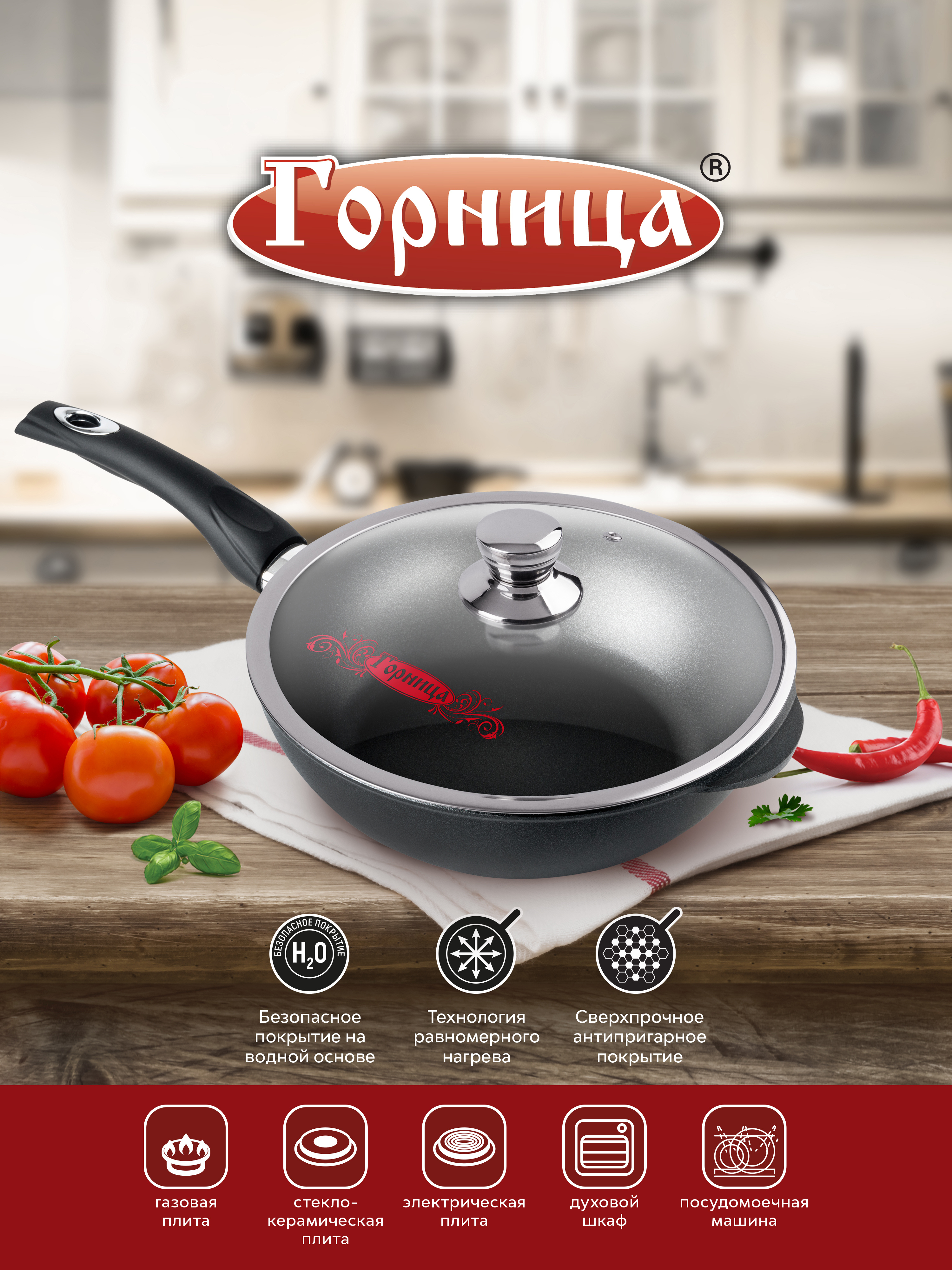 Сотейник Горница 240/82 мм, несъемная ручка (софт тач), с крышкой, (п/у), серия "Классик" ст2411а