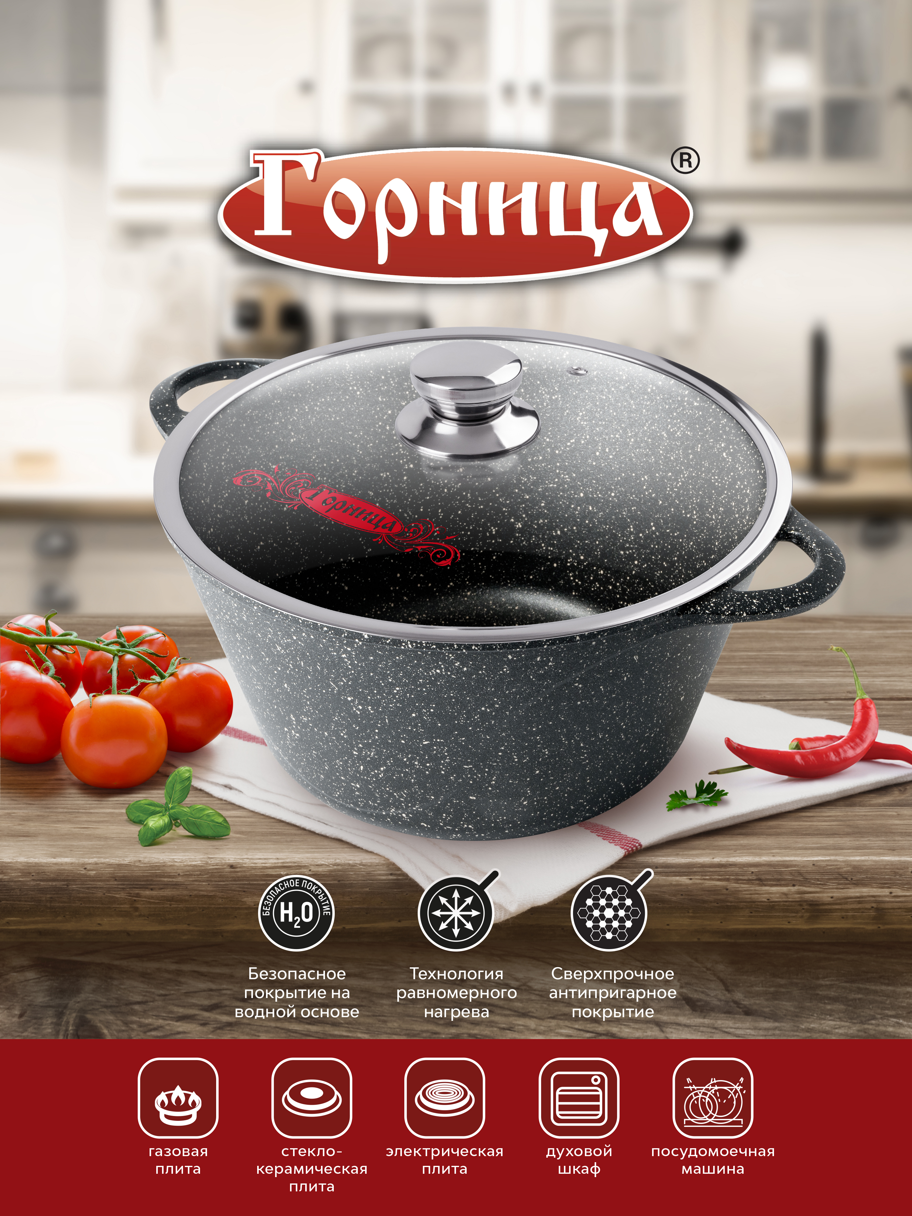 Кастрюля Горница 3л., литые ручки, с крышкой, (п/у), серия "Гранит"