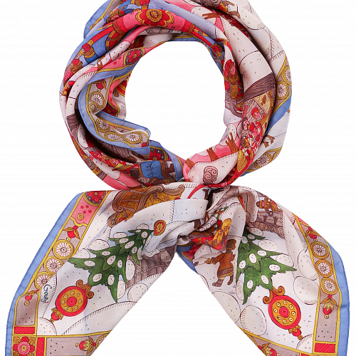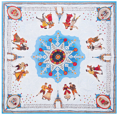 Платок GOURJI "НА КАТКЕ", 100% шелк, 120x120 см