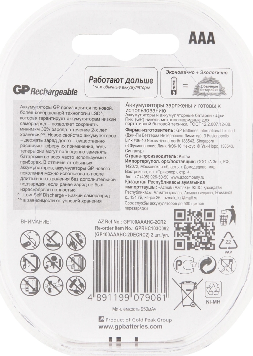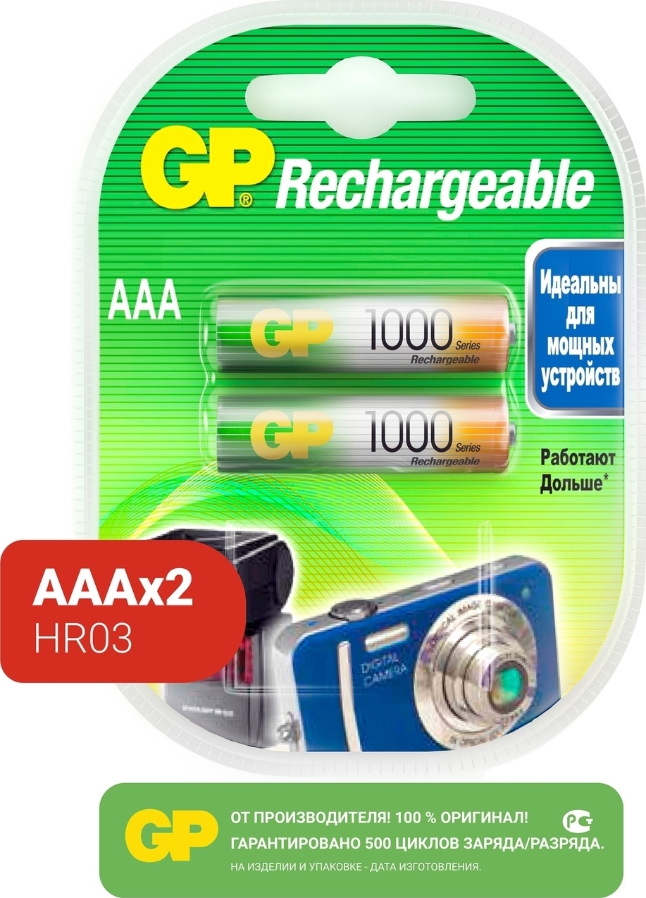 Аккумулятор Ni-Mh 950 мА·ч GP Rechargeable 1000 Series AAA