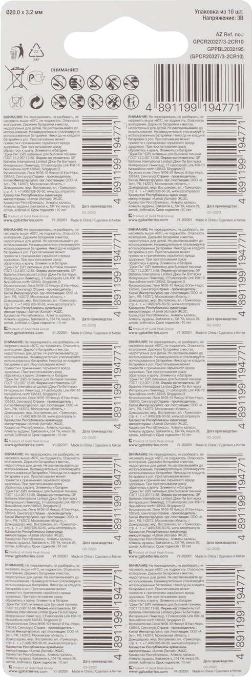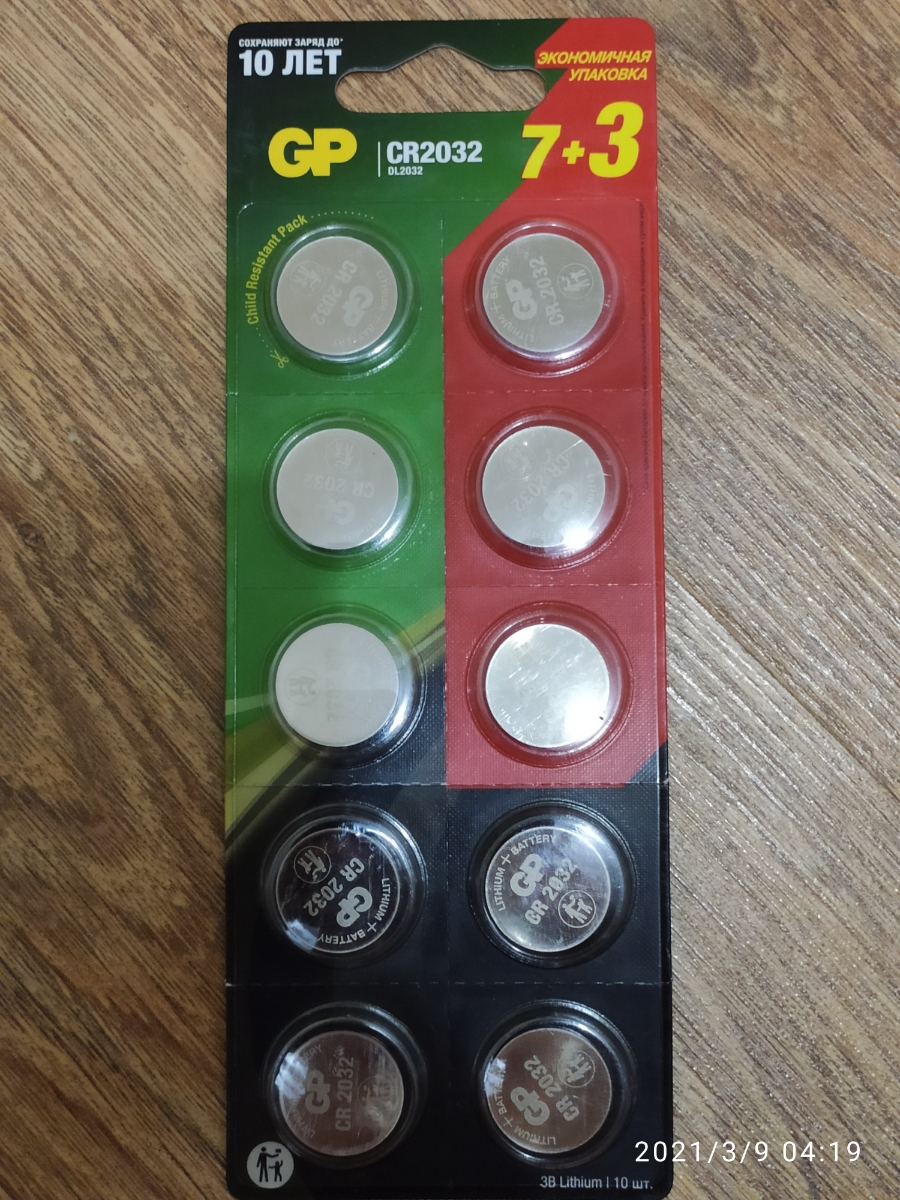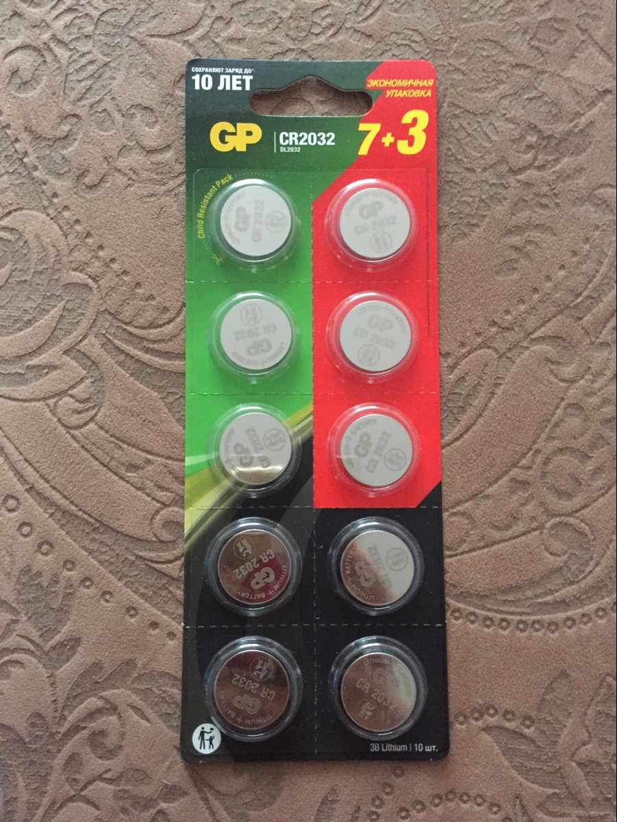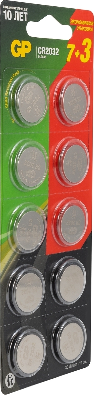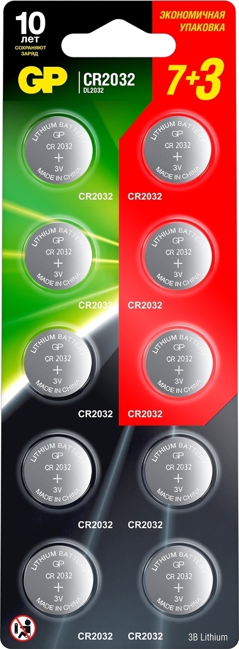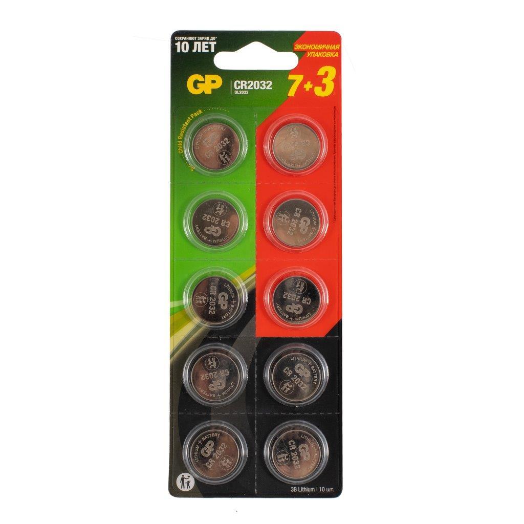 Литиевые (Lithium) батарейки GP CR2032, 10 шт.