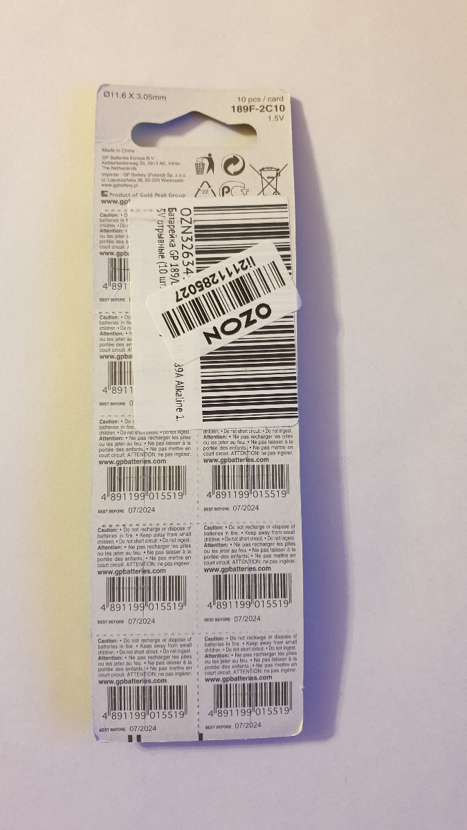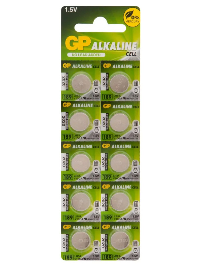 Батарейка GP 189/LR54/G10/LR1130/389A Alkaline 1.5V отрывные (10 шт. в блистере)