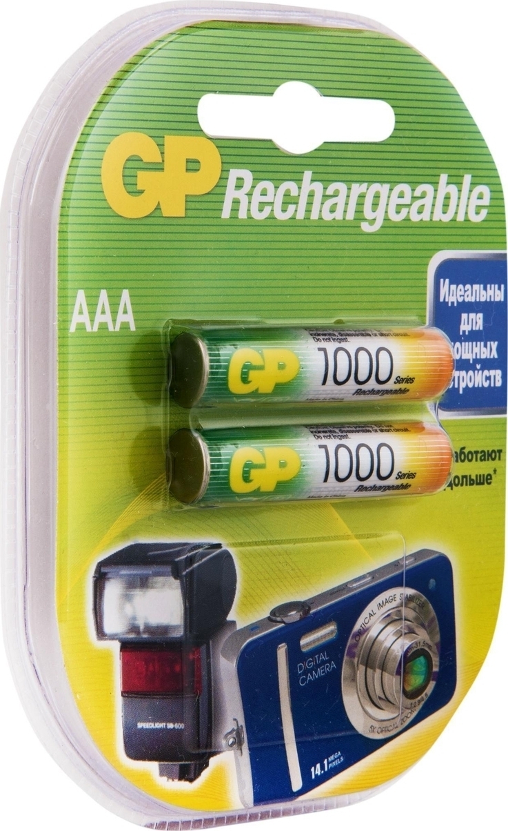 Аккумулятор GP, Ni-Mh, тип AAA, 1000 mAh (GP 100AAAHC-2DECRC2), 1.2V, 2 шт