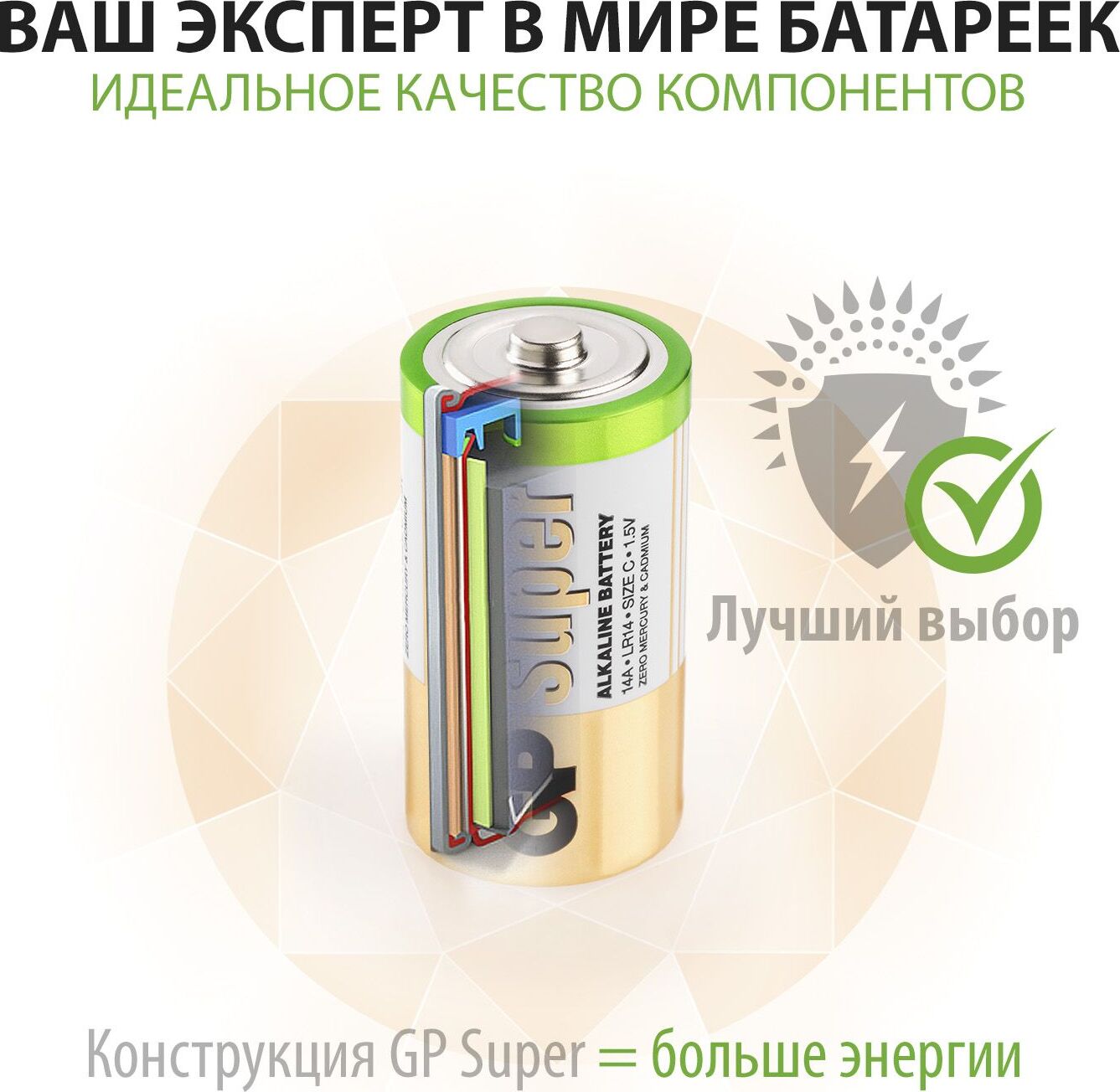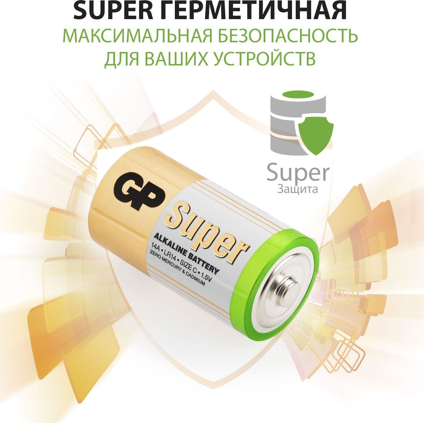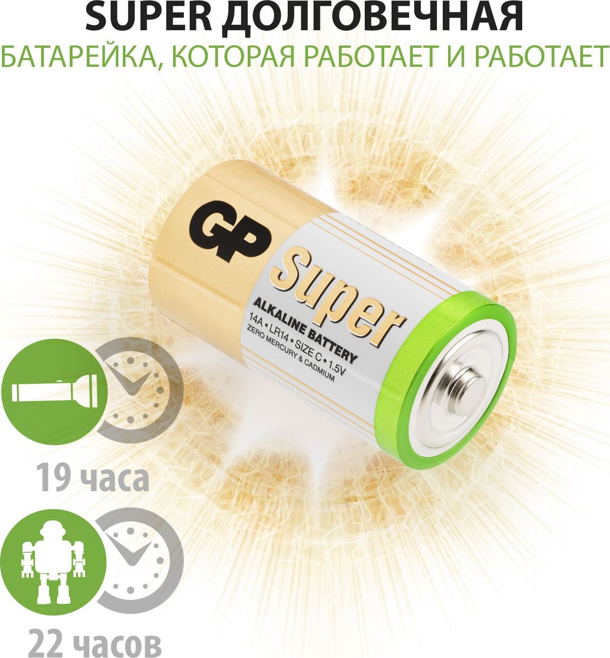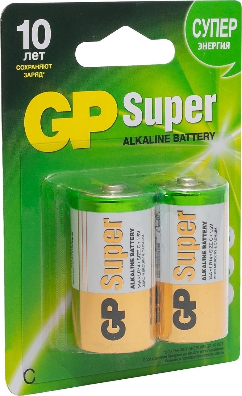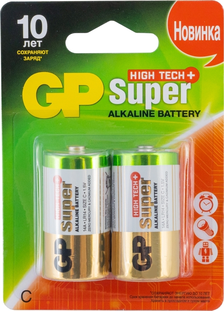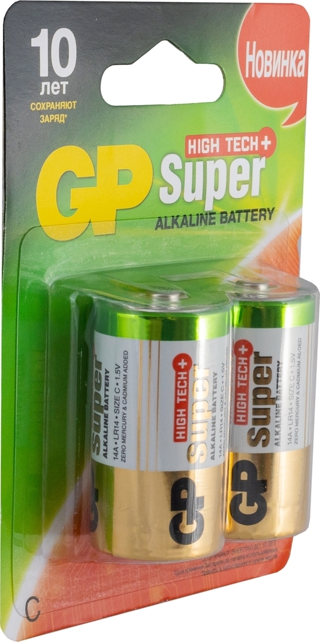 Батарейки щелочные (алкалиновые) GP Super High Tech, тип C, 1.5V, 2шт. (LR14)