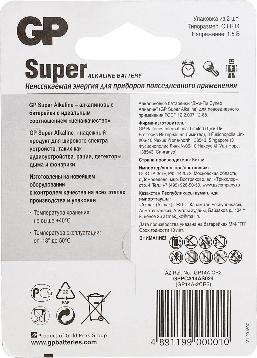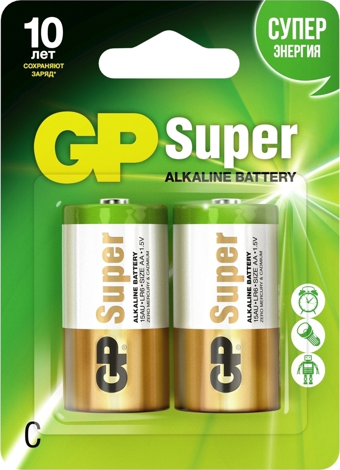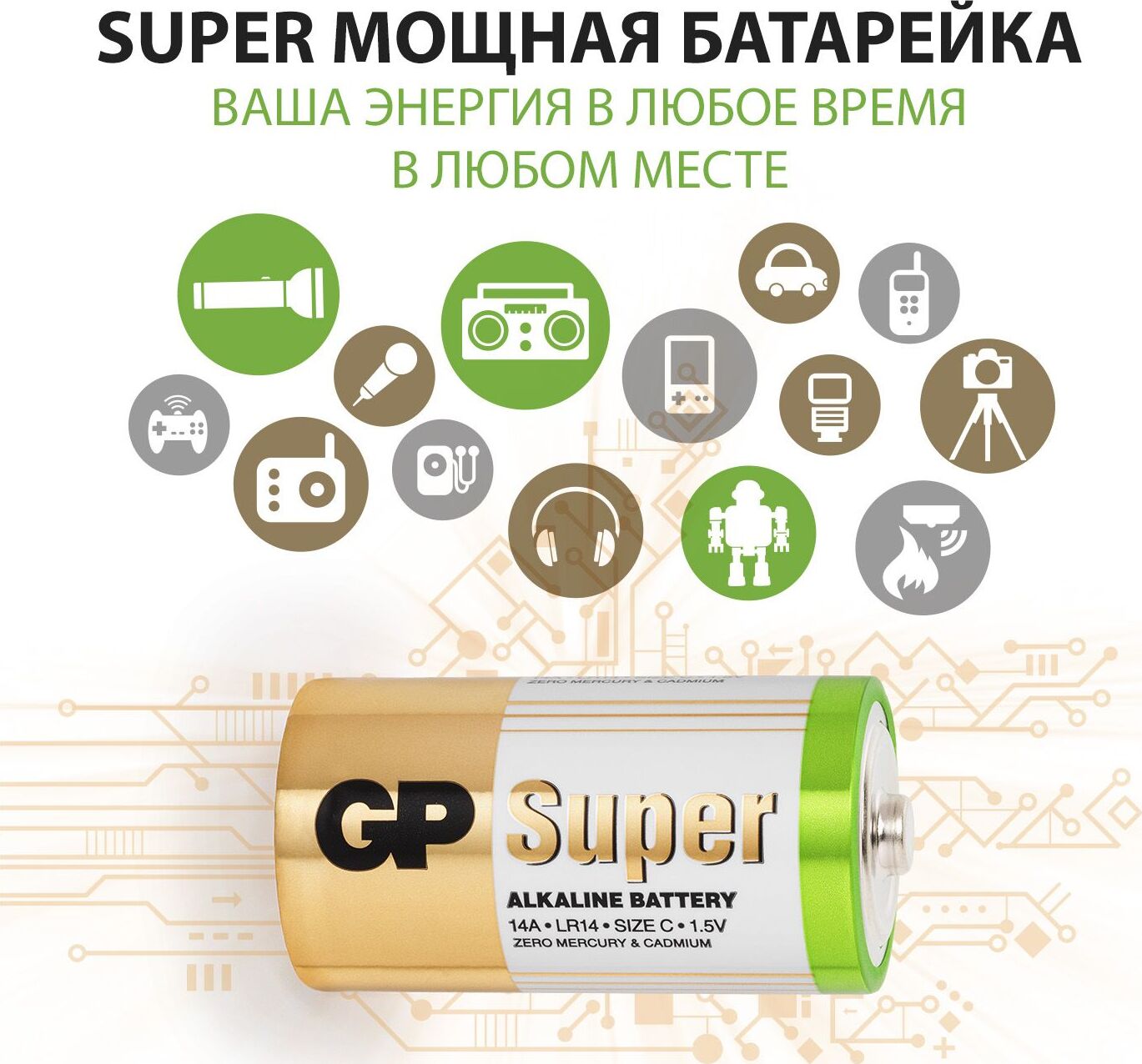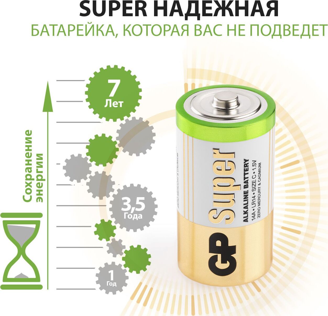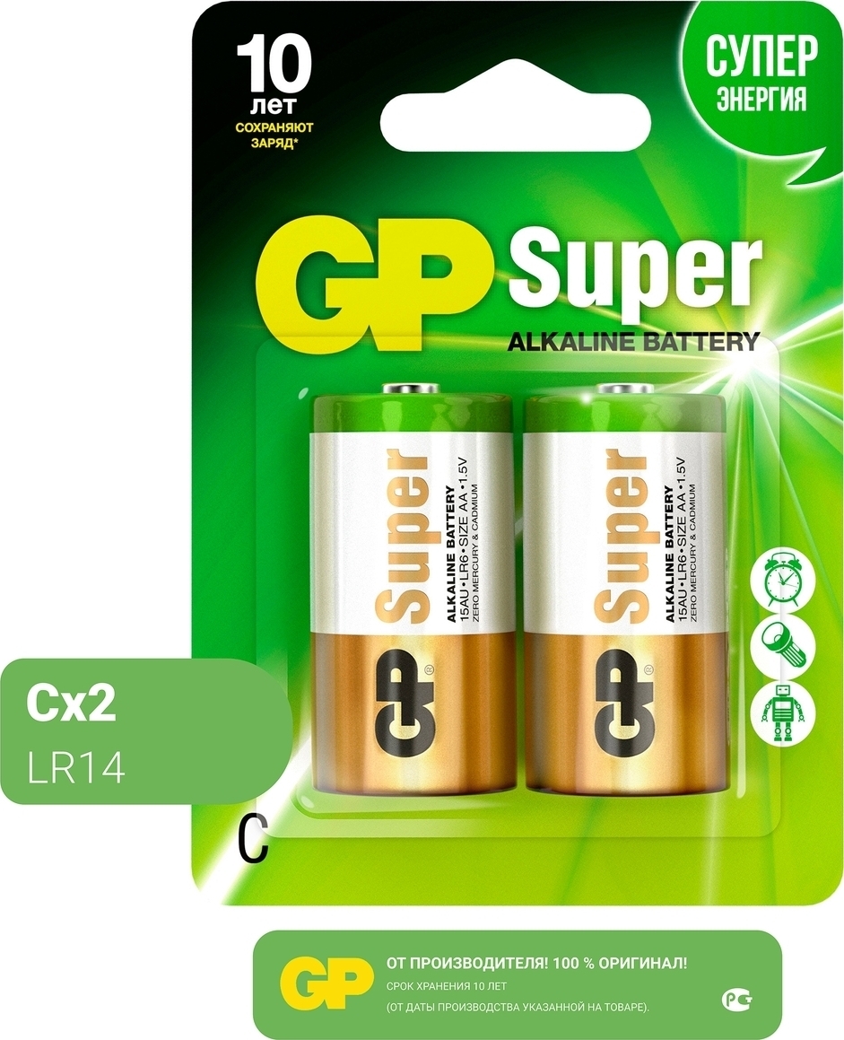 Батарейки щелочные (алкалиновые) GP Super High Tech, тип C, 1.5V, 2шт. (LR14)