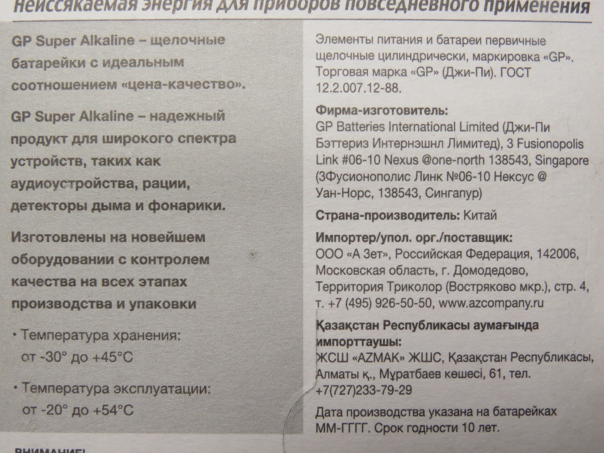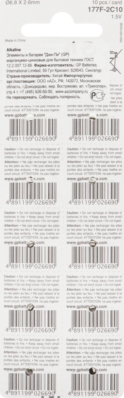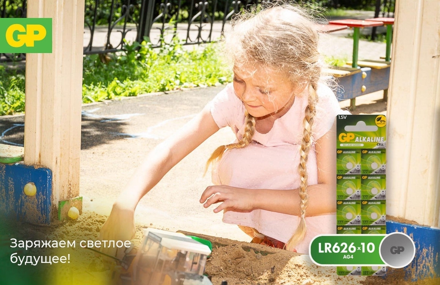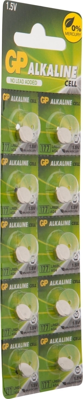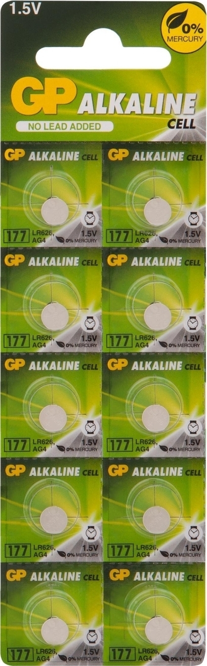 Батарейки щелочные (алкалиновые), GP Alkaline, тип LR66 (AG4, LR626, LR626), 1.5V, 10шт. (Таблетка)