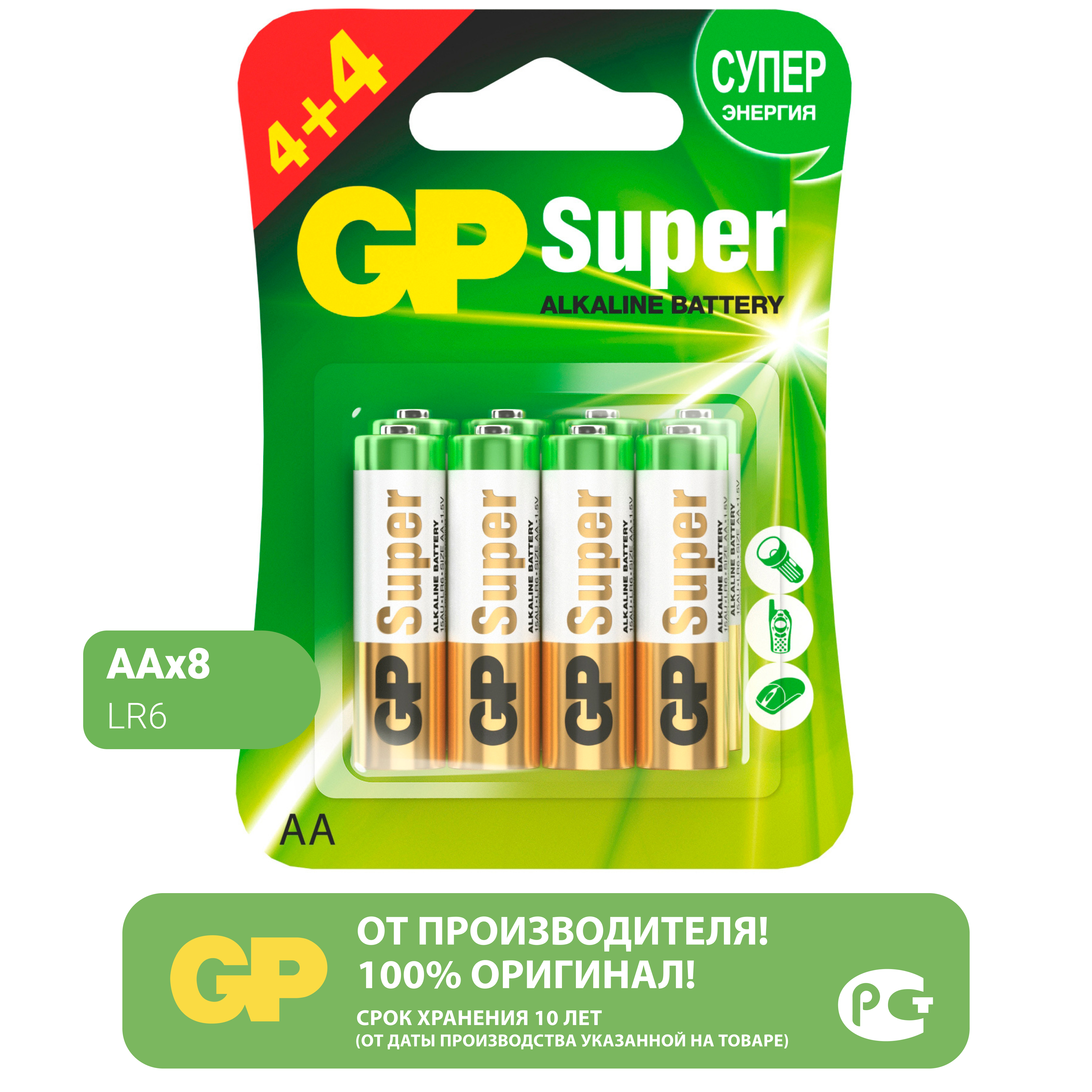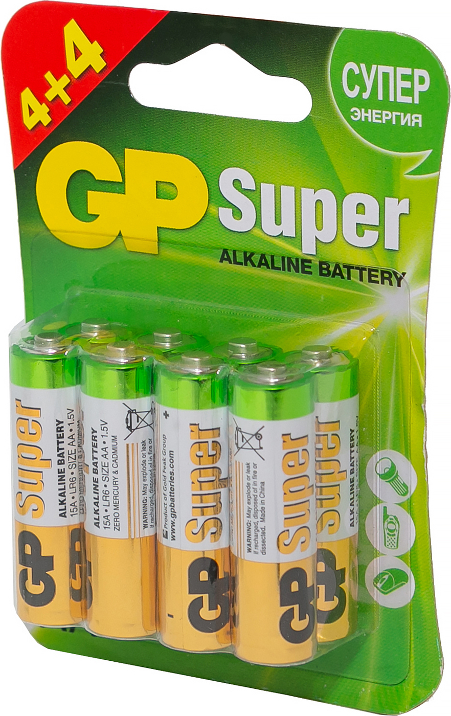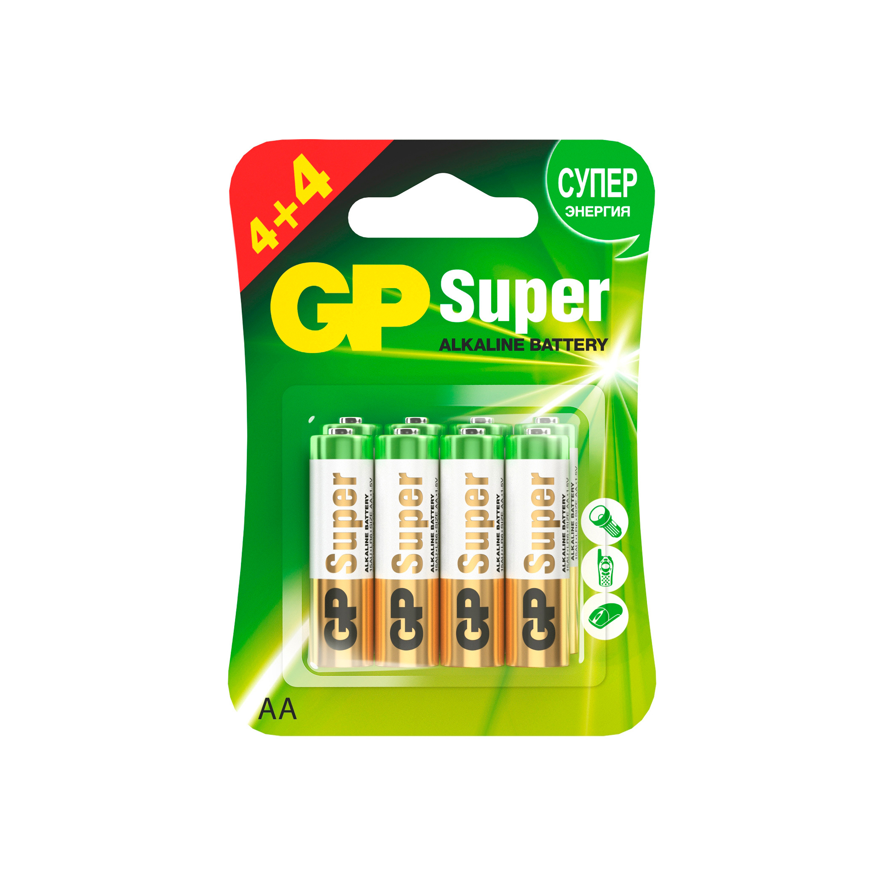Набор щелочных батареек GP Super Alkaline 15A, тип АА (LR6) 8 шт