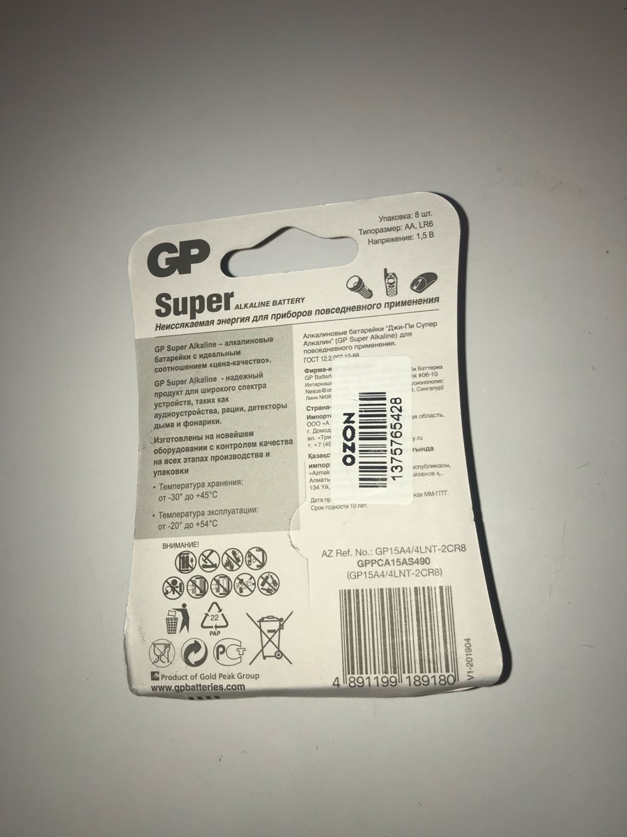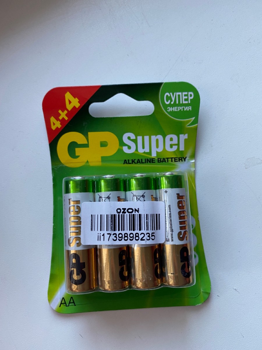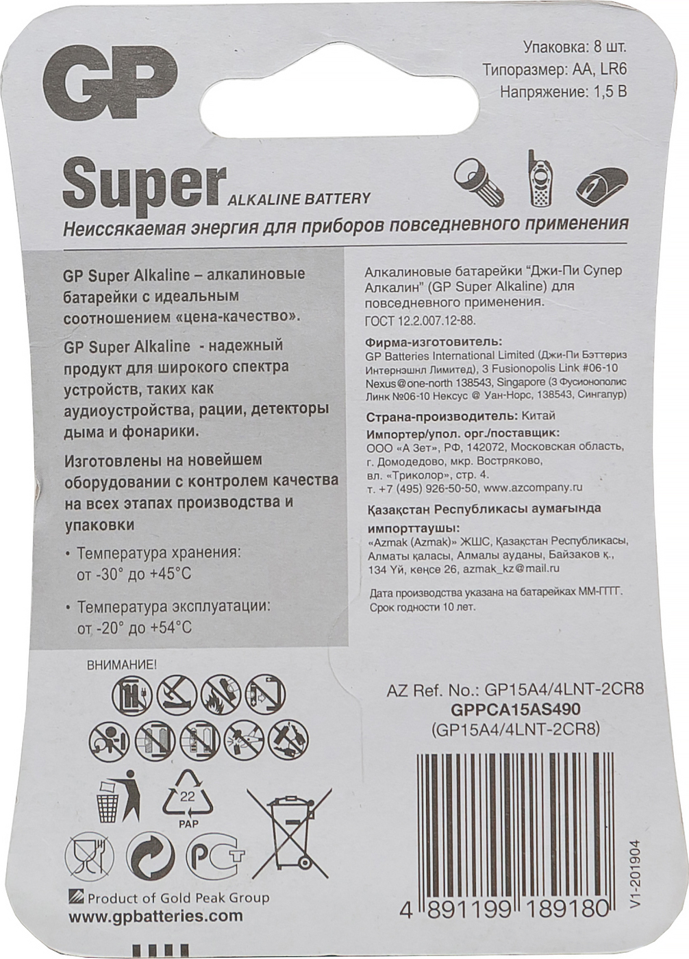 Набор щелочных батареек GP Super Alkaline 15A, тип АА (LR6) 8 шт