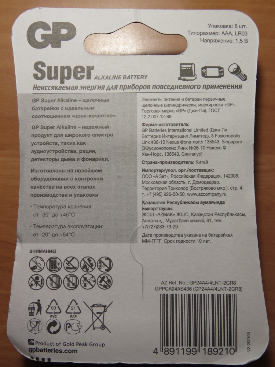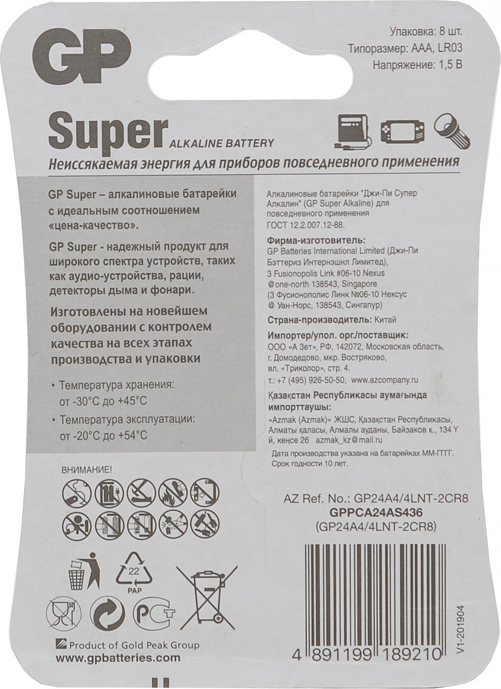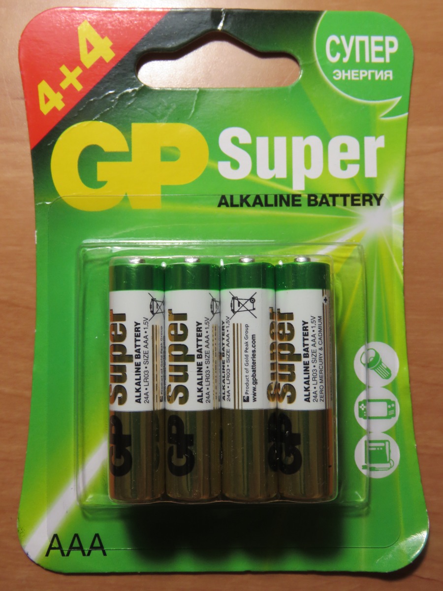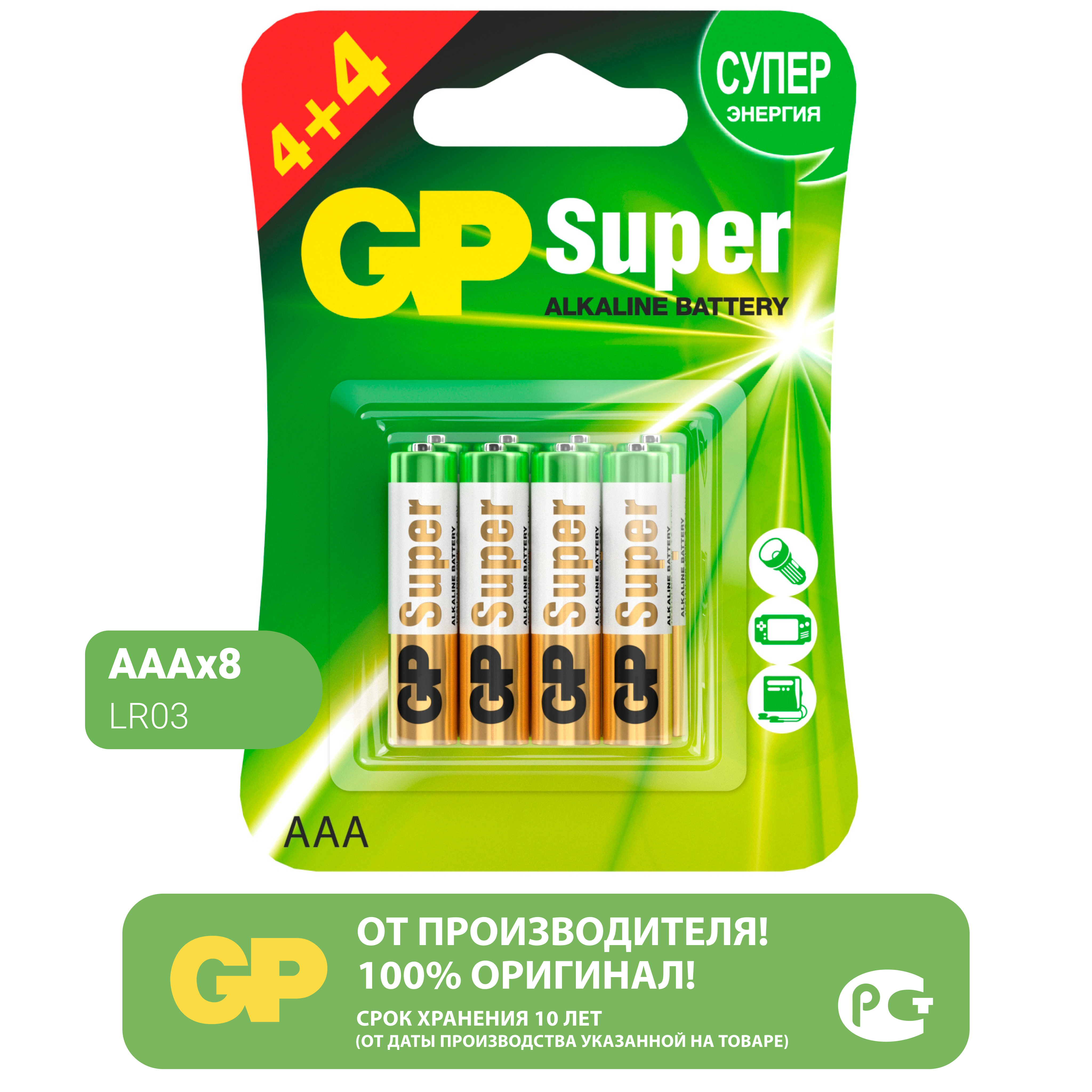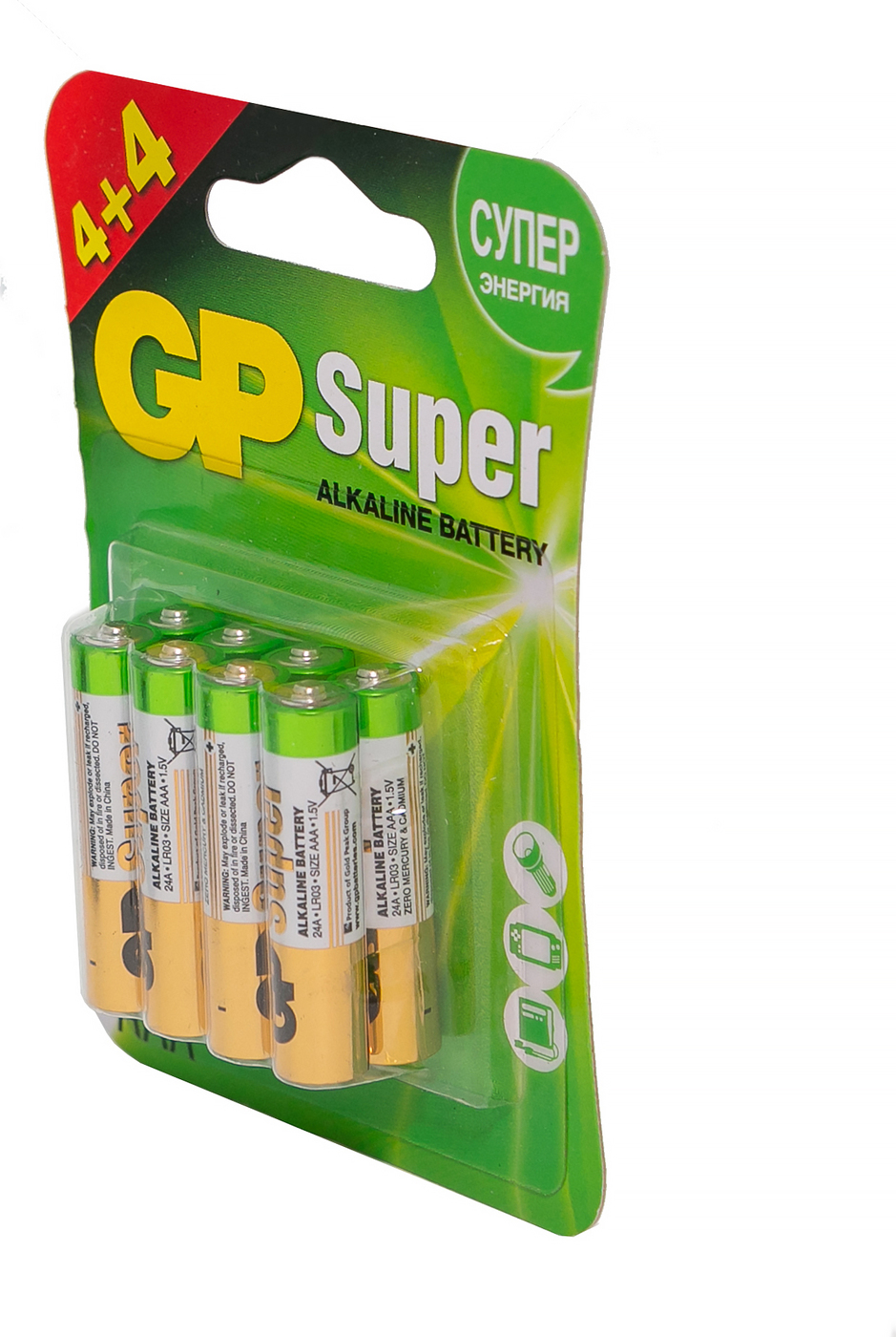 Набор батареек GP Super Alkaline 24A тип ААА (LR03) 8 шт