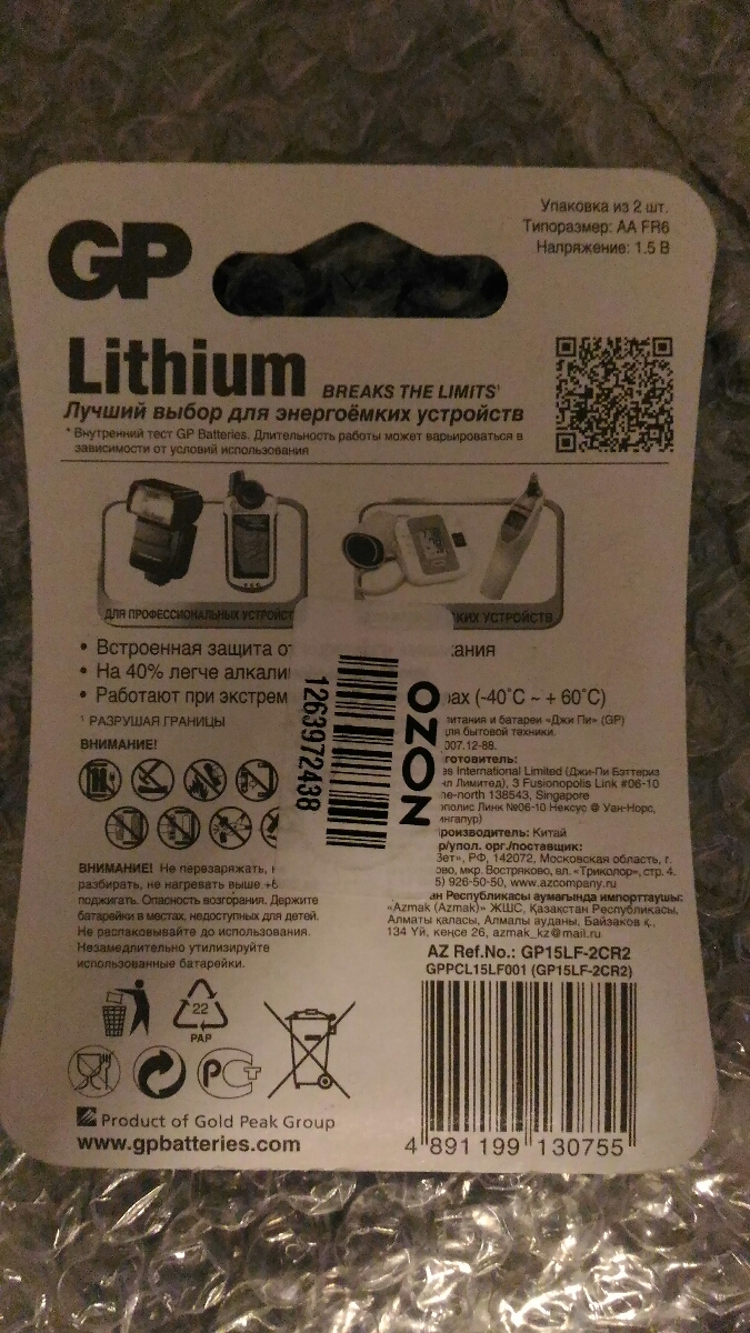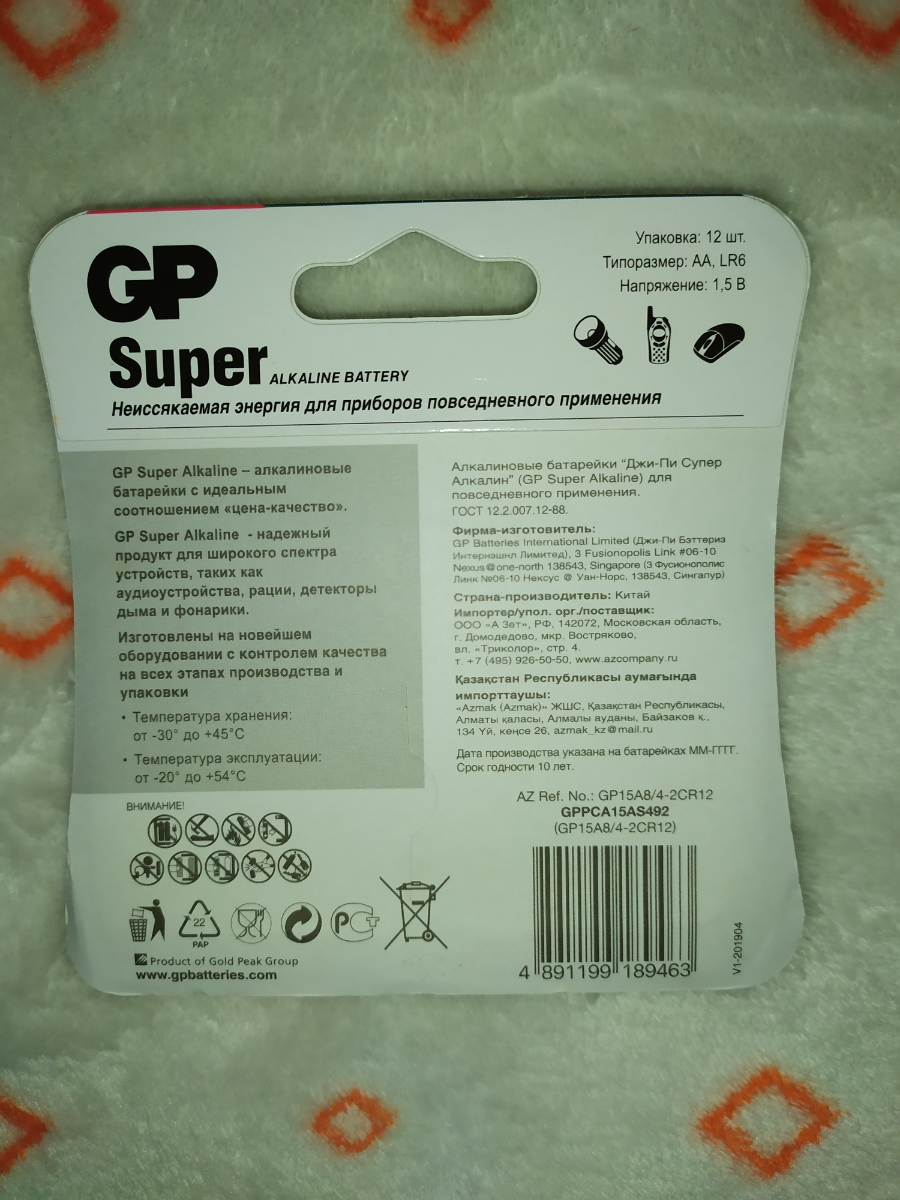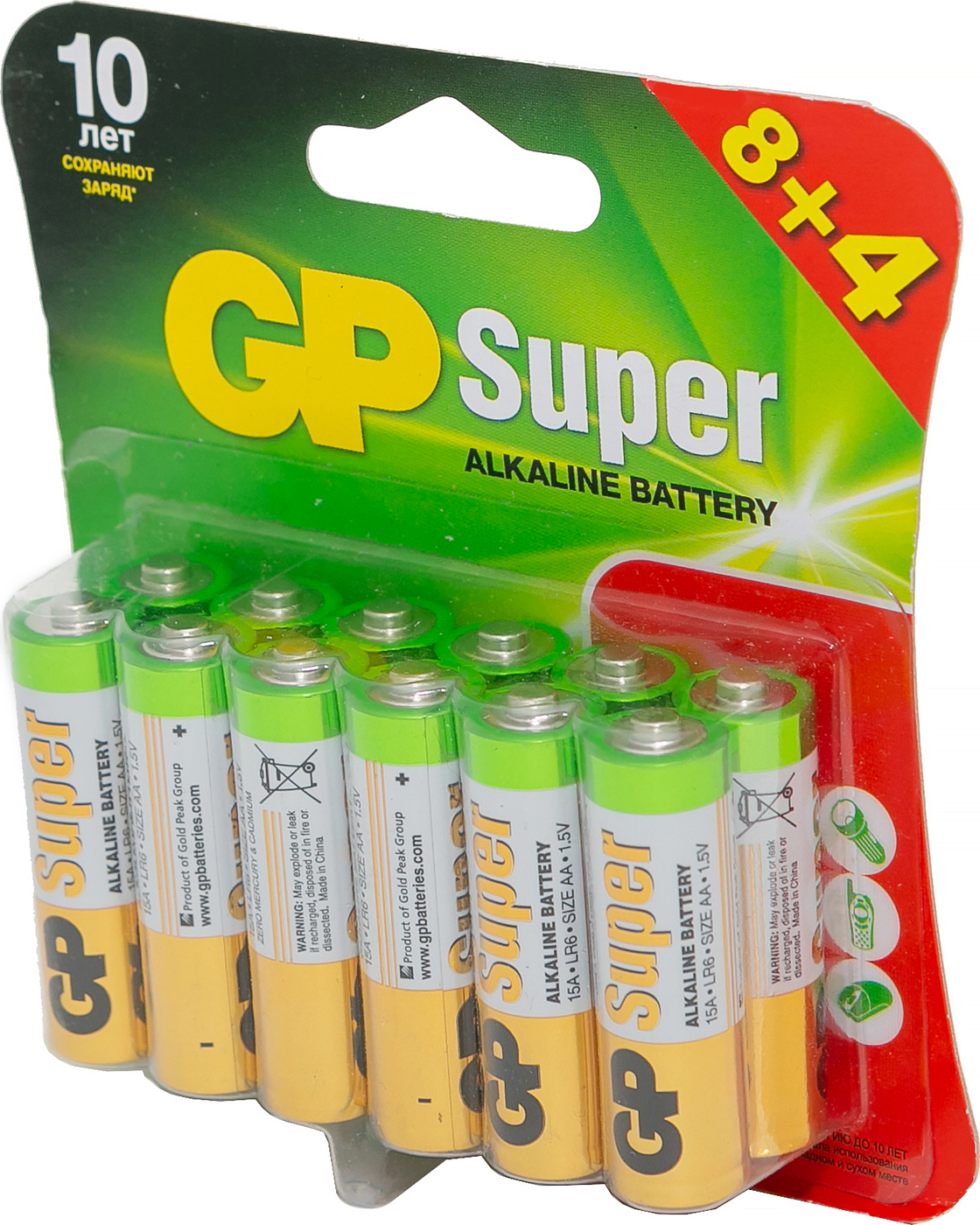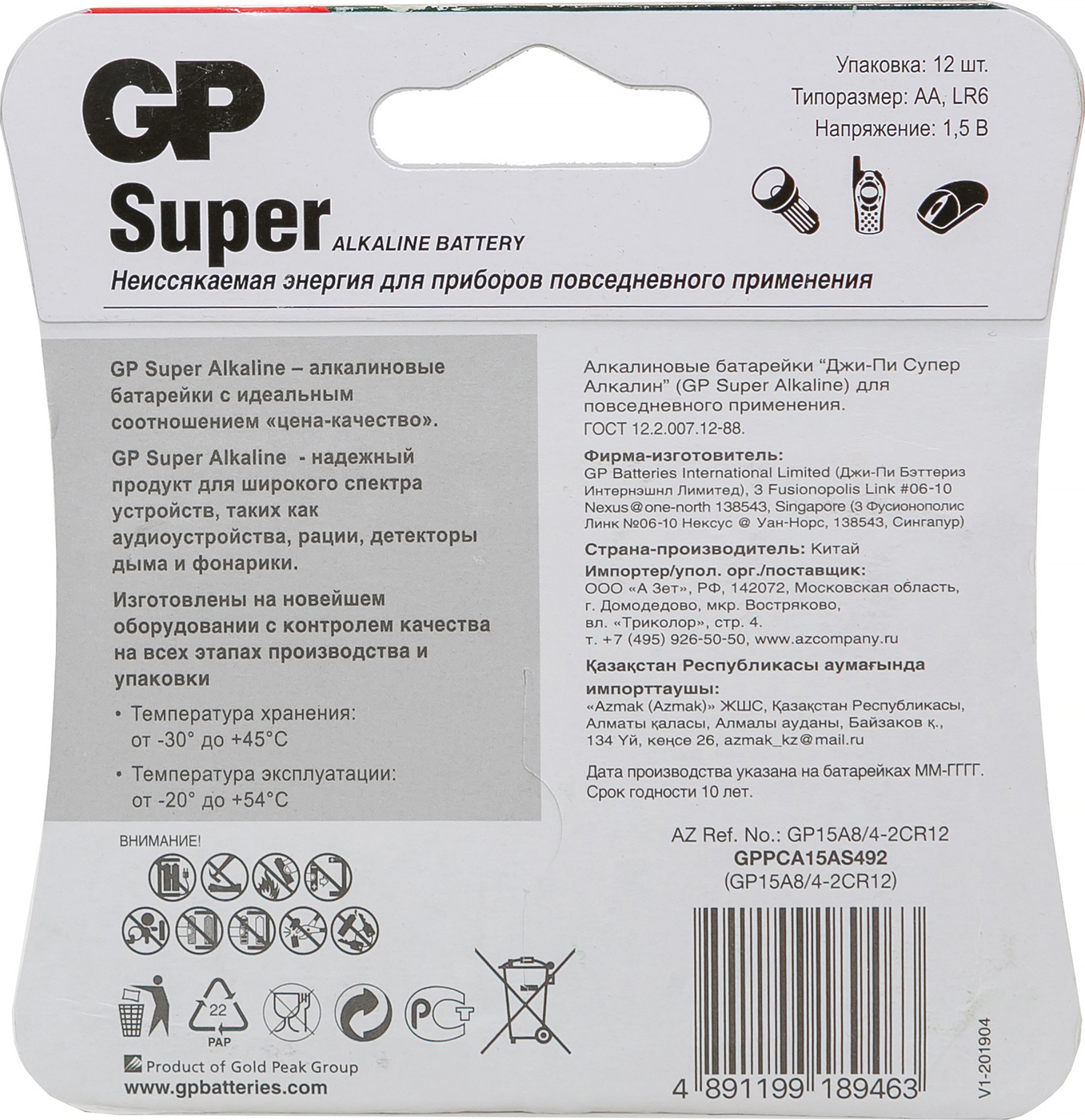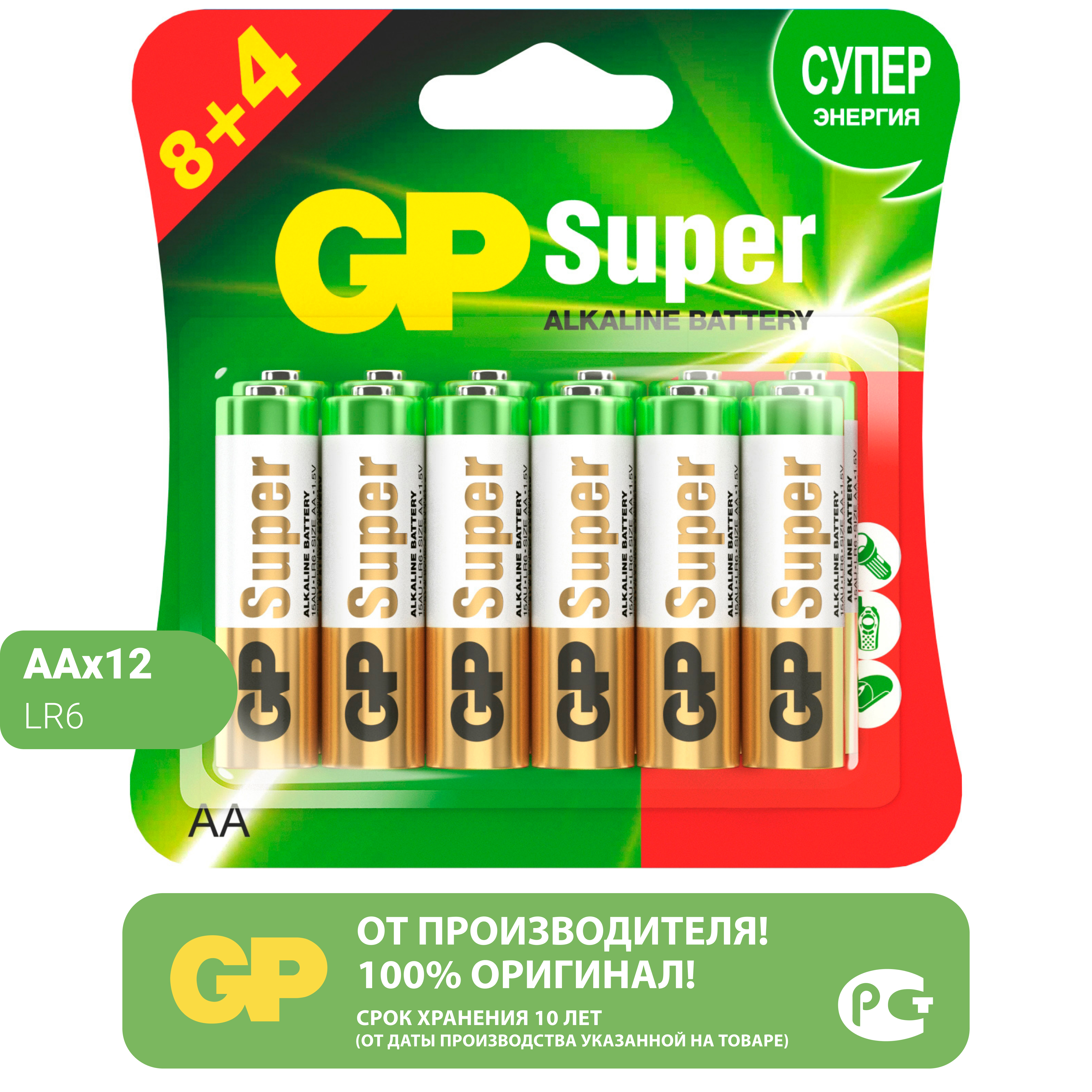 Набор алкалиновых батареек GP Super 15A, тип АА (LR6) 12 шт