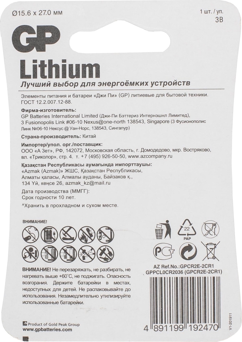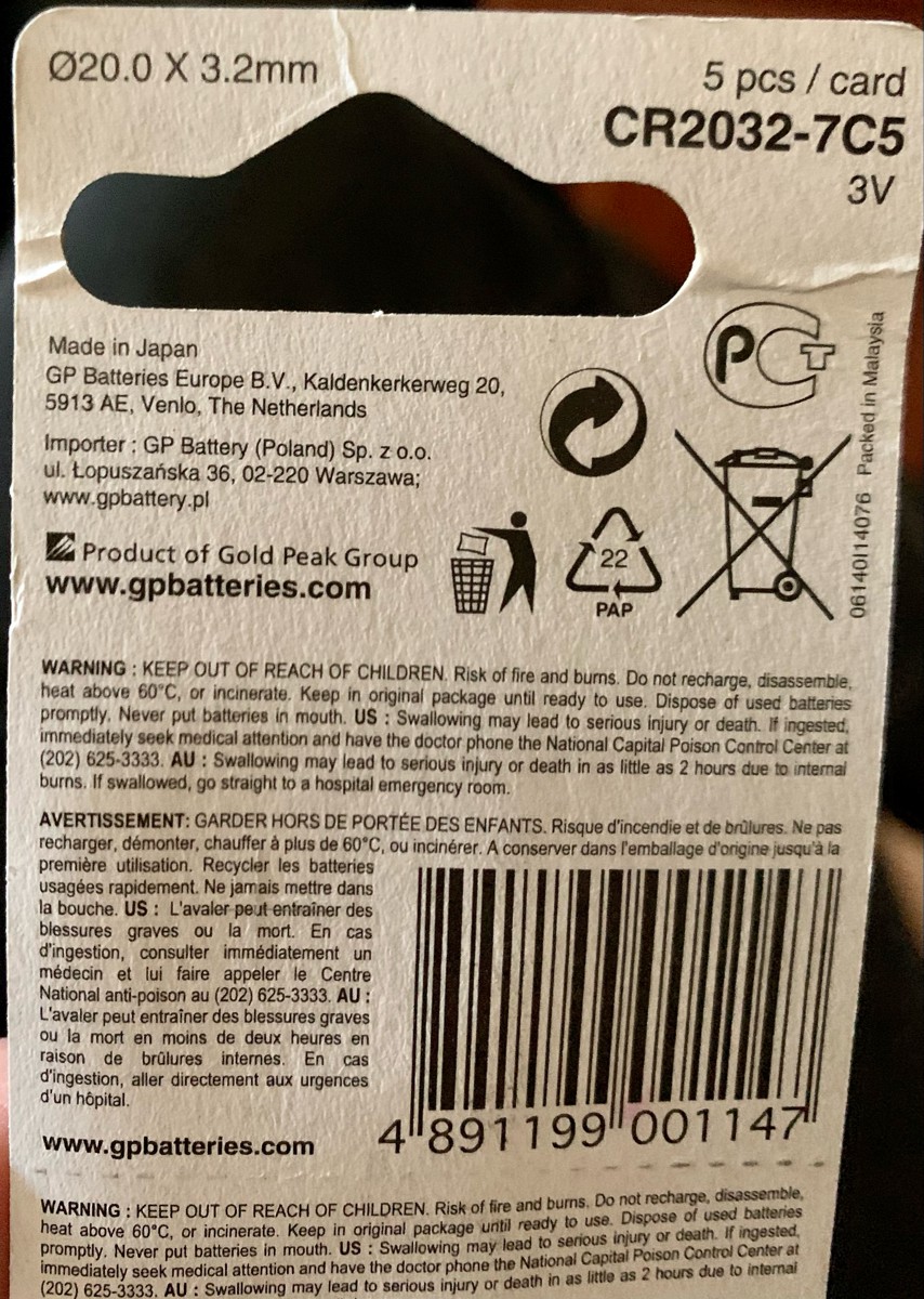 Батарейка CR2032 3V GP Blister, упаковка 5 шт. (Япония)