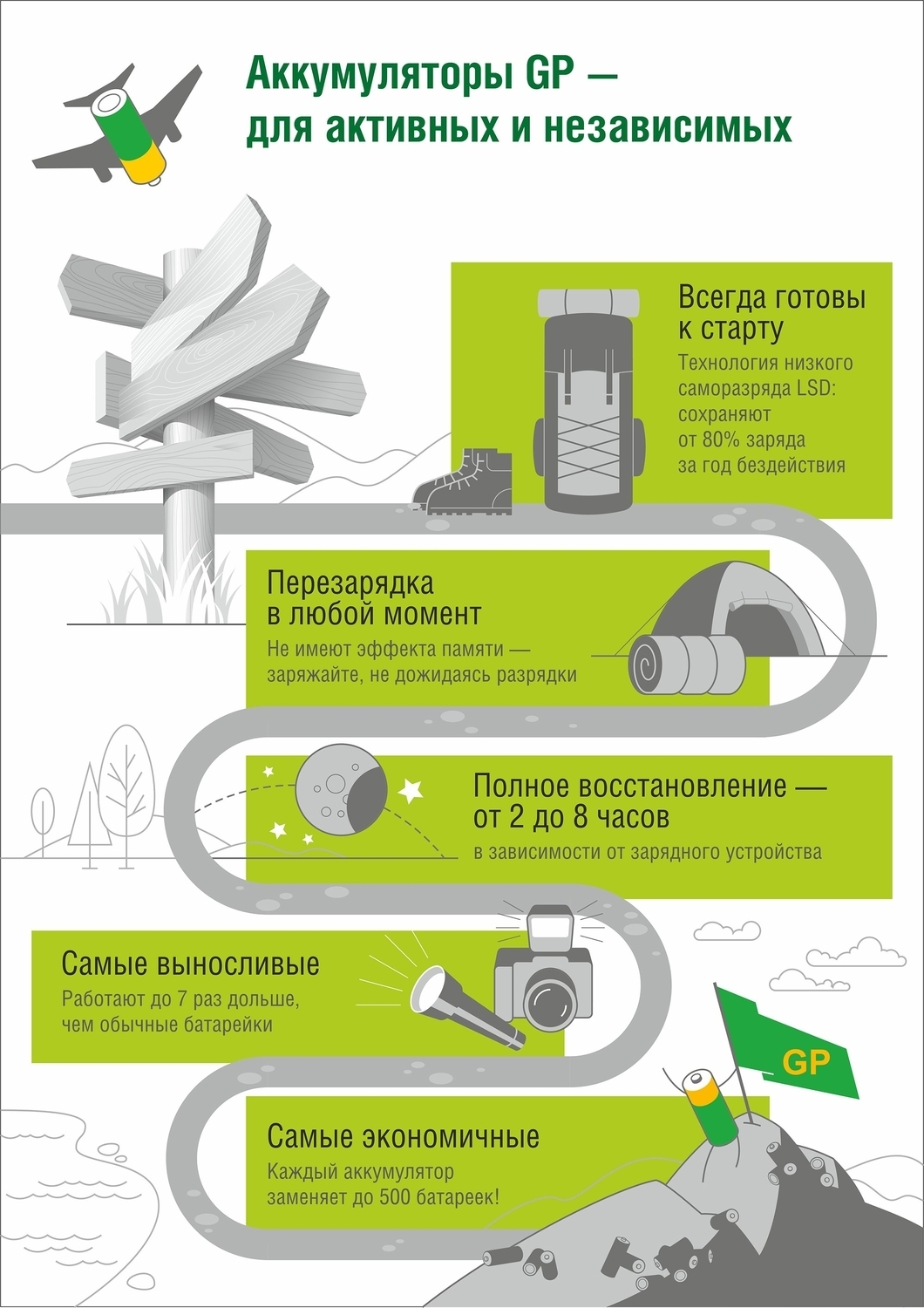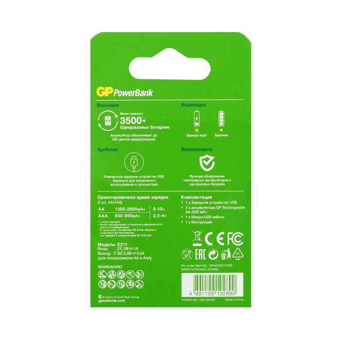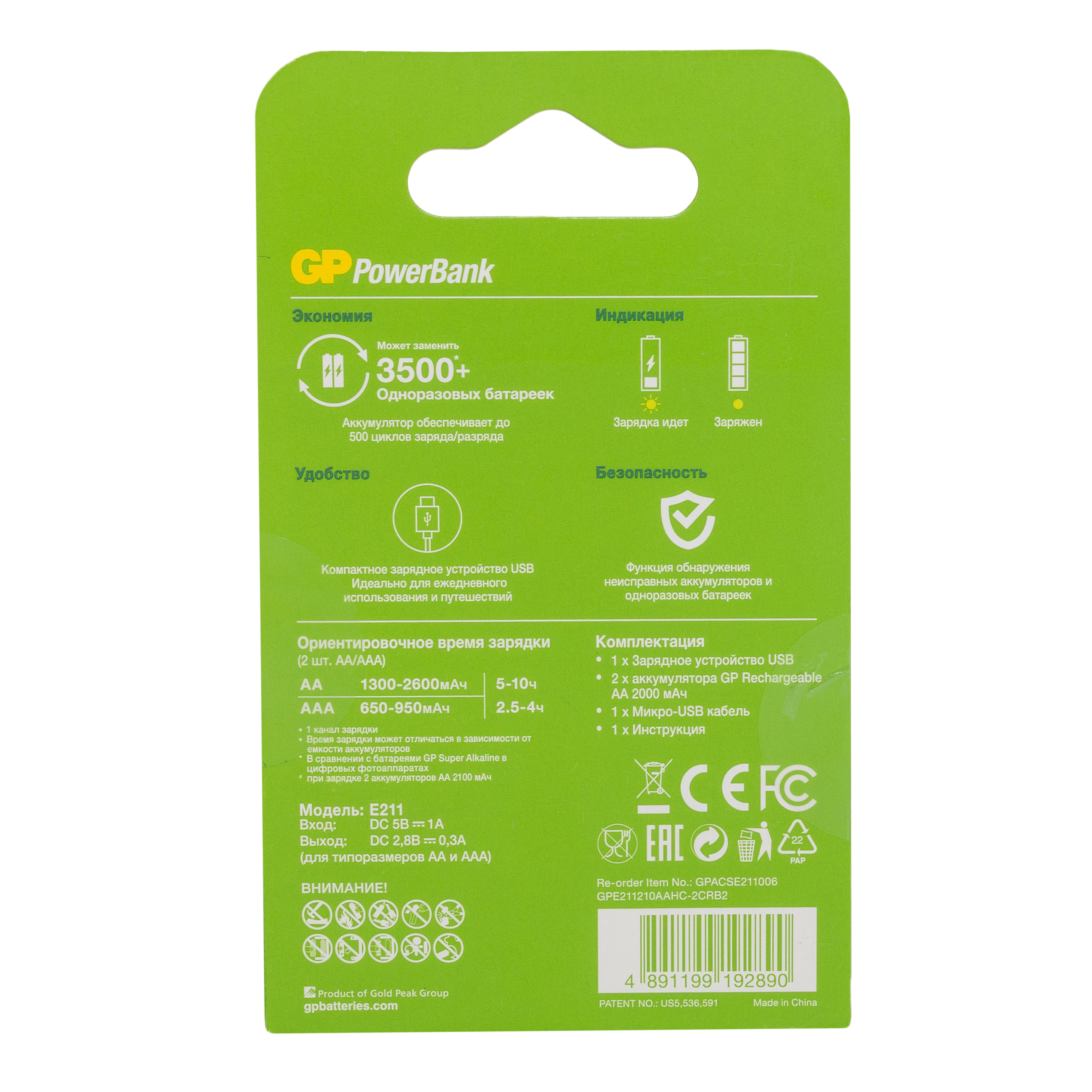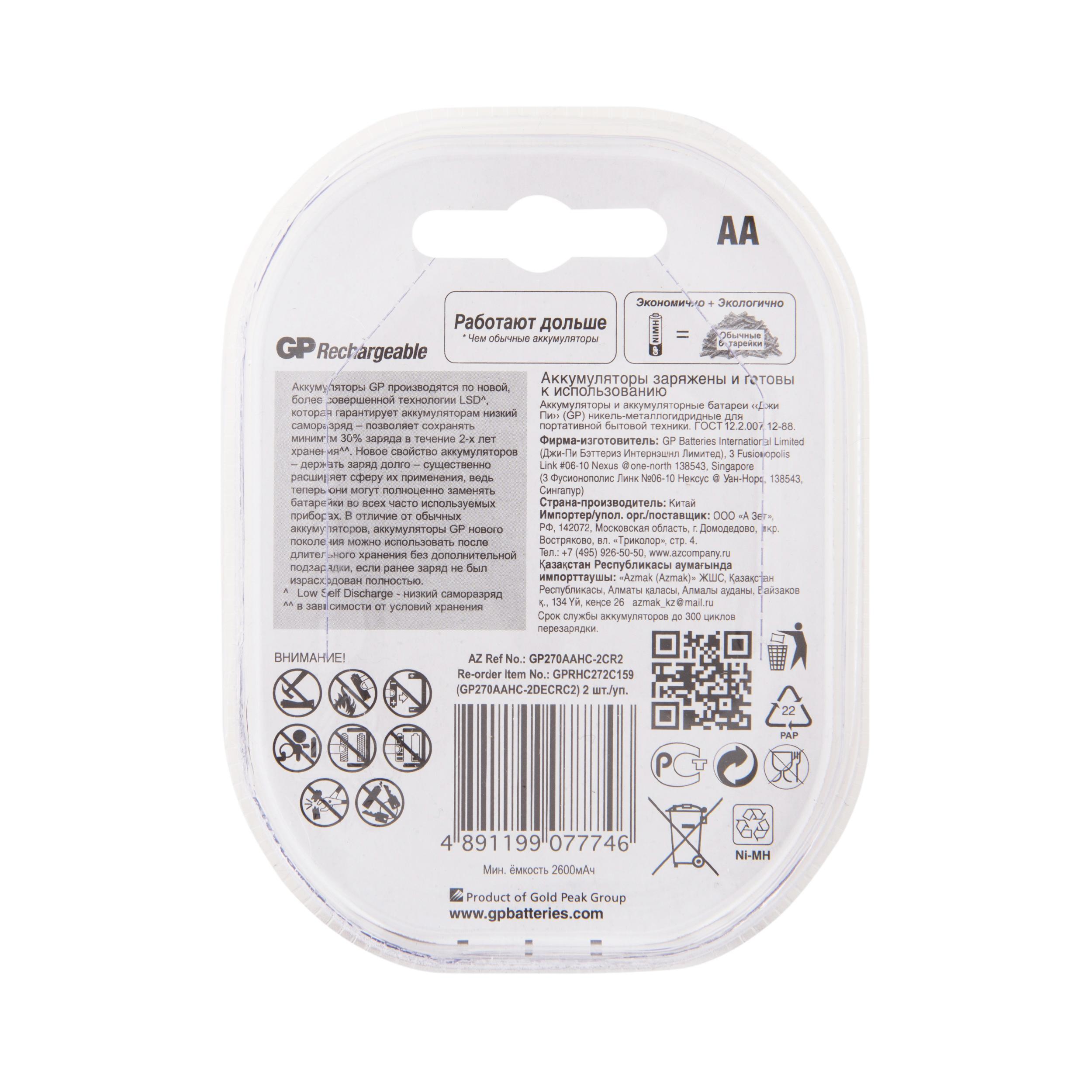 Перезаряжаемые аккумуляторы GP 270AAHC AA, емкость 2650 мАч - 2 шт.