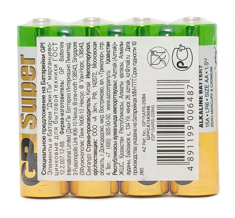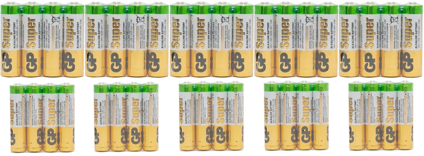 Батарейки GP Super, AA (LR06, 15А), алкалиновые, комплект 40 шт, в пленке