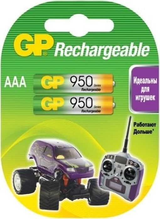 Аккумулятор GP Batteries, Ni-Mh, тип AAA, 950 mAh (GP 95AAAHC-UC2 PET-G), 1.2V, 2 шт