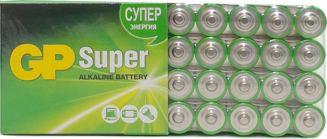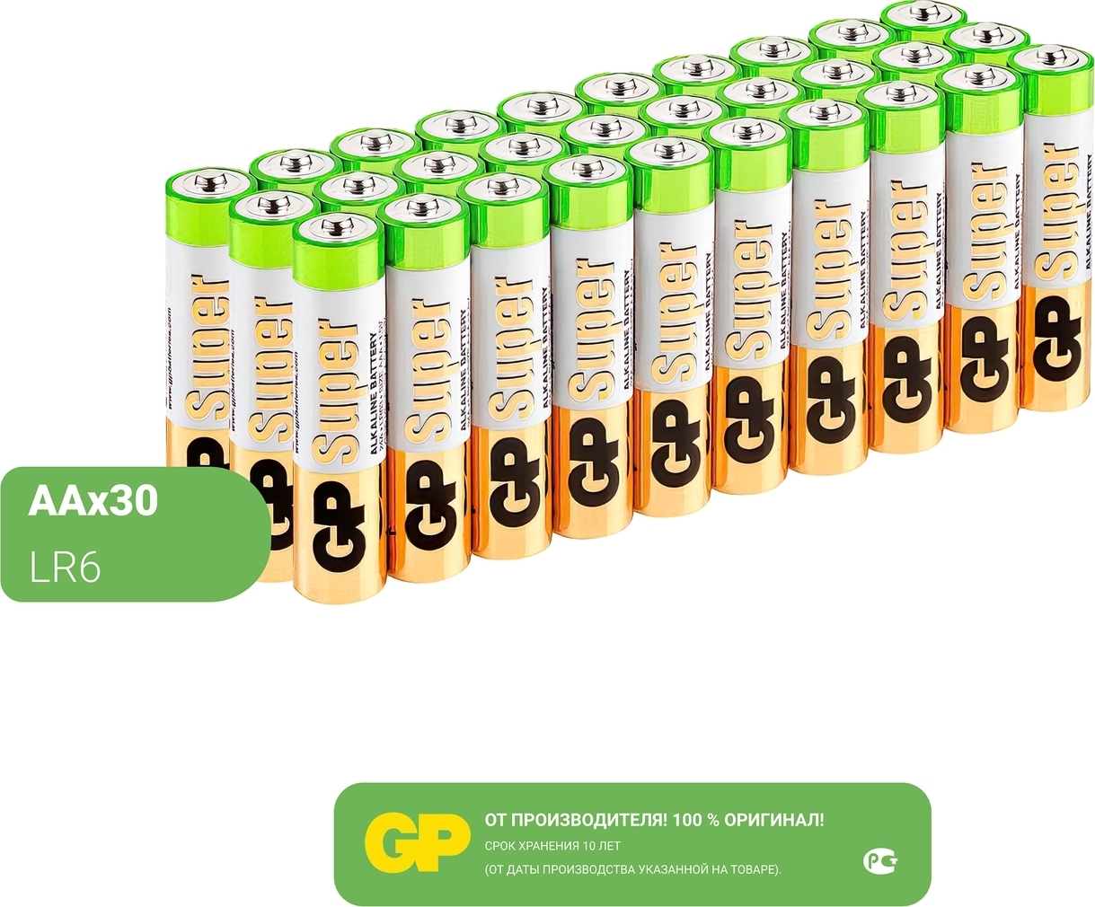 Батарейки щелочные (алкалиновые) GP Super, тип AA, 1.5V, 30шт. (Пальчиковые)