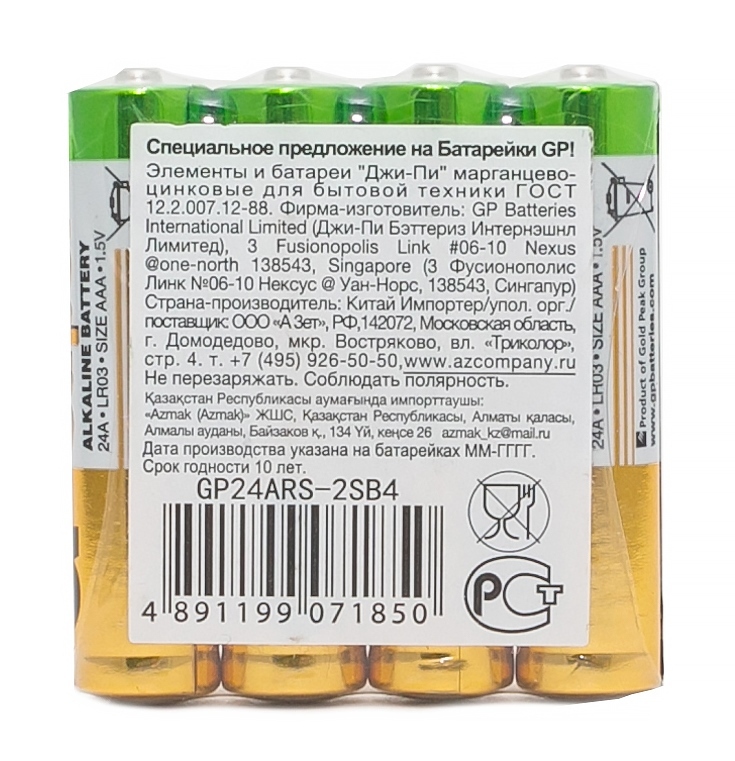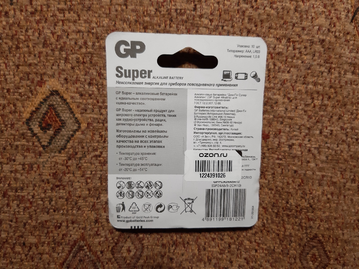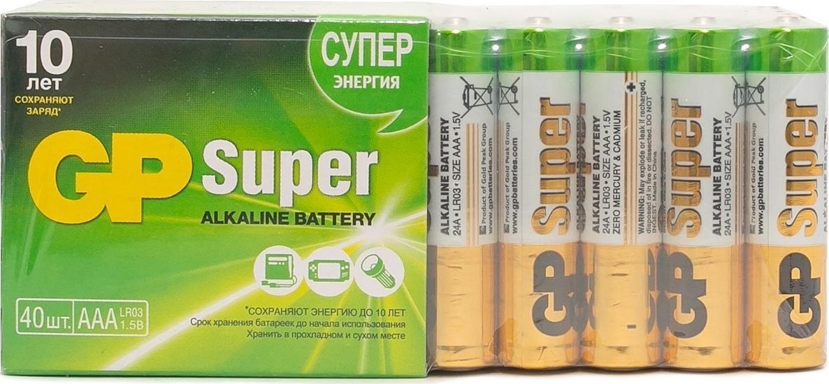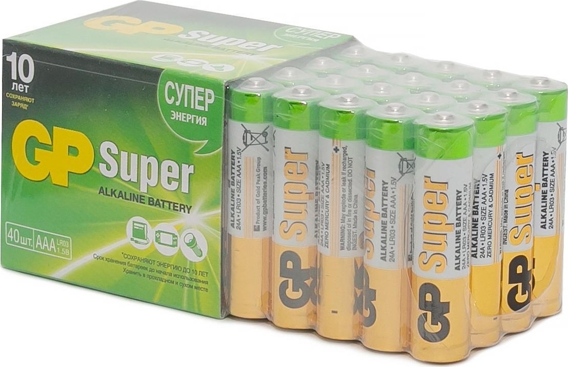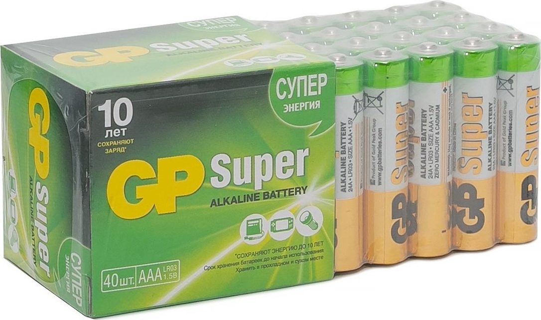 Батарейки щелочные (алкалиновые) GP Super, тип AAA, 1.5V, 40шт. (Мизинчиковые)