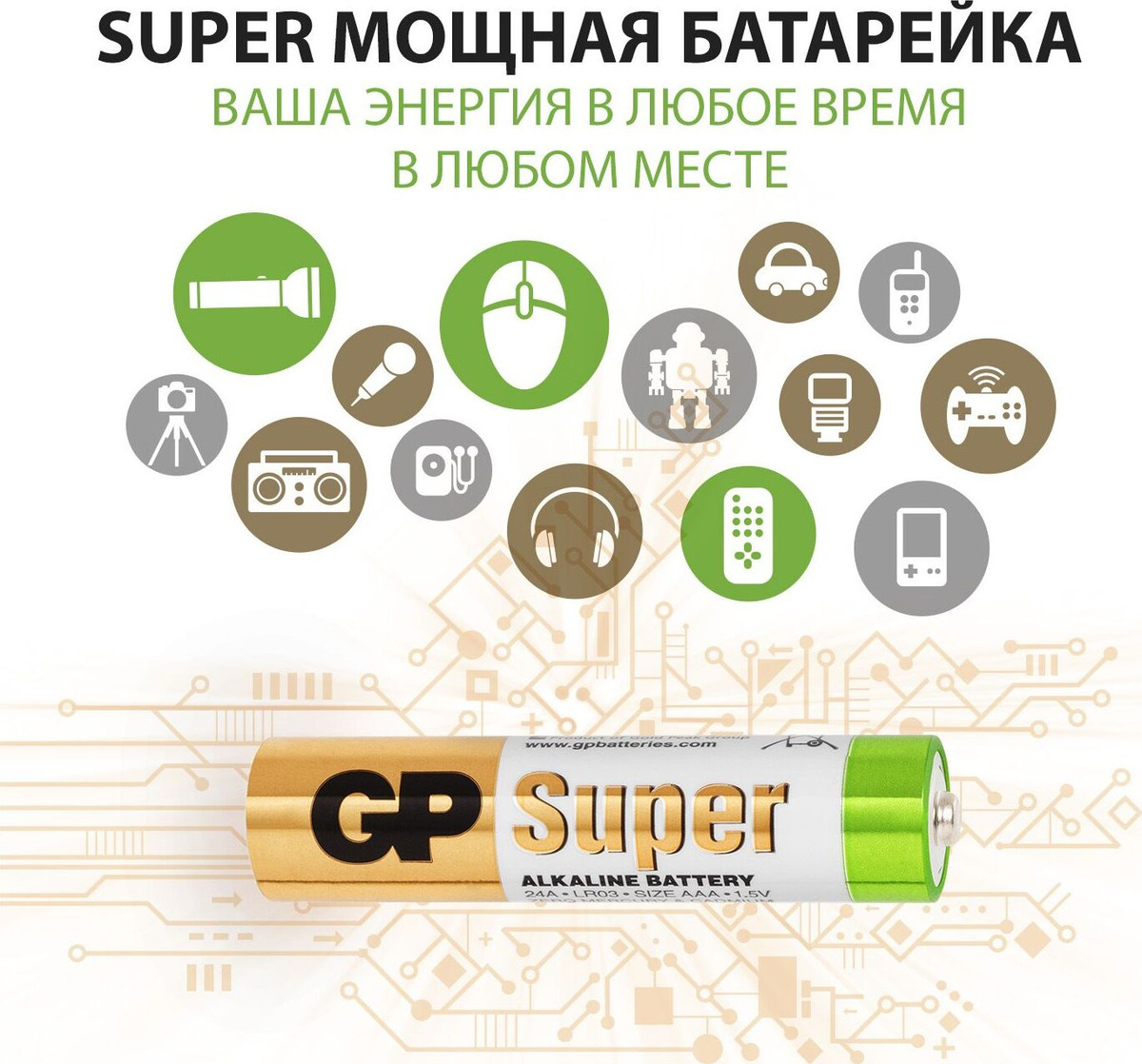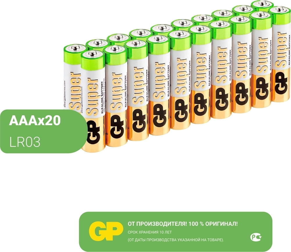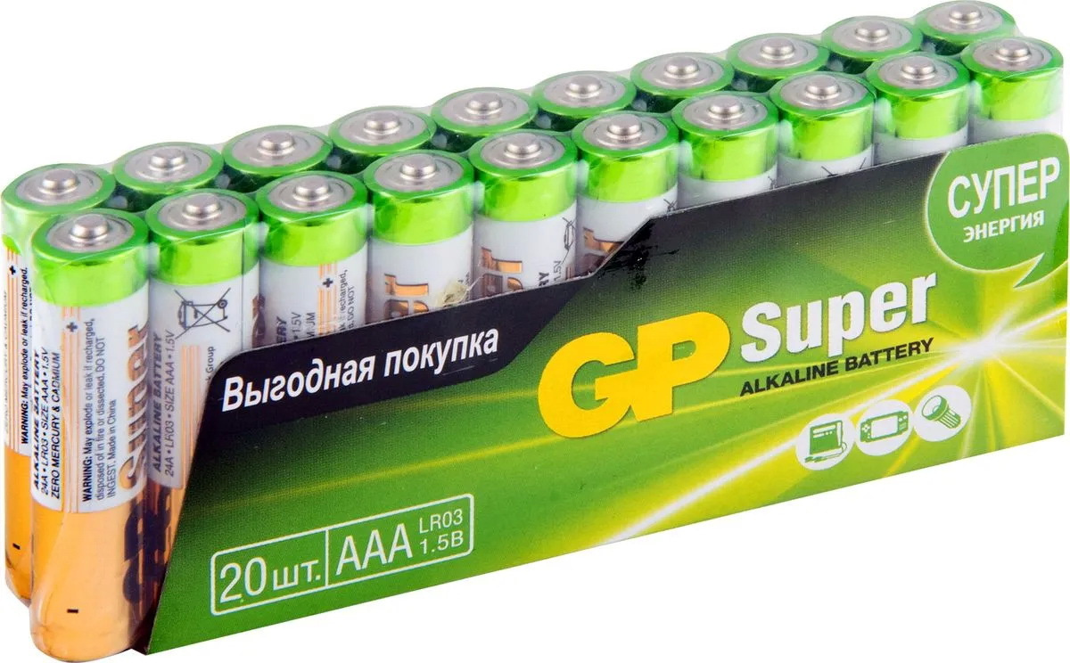 Батарейки GP Super Alkaline, (набор) ААA (Мизинчиковые) (LR6), упаковка 20 шт
