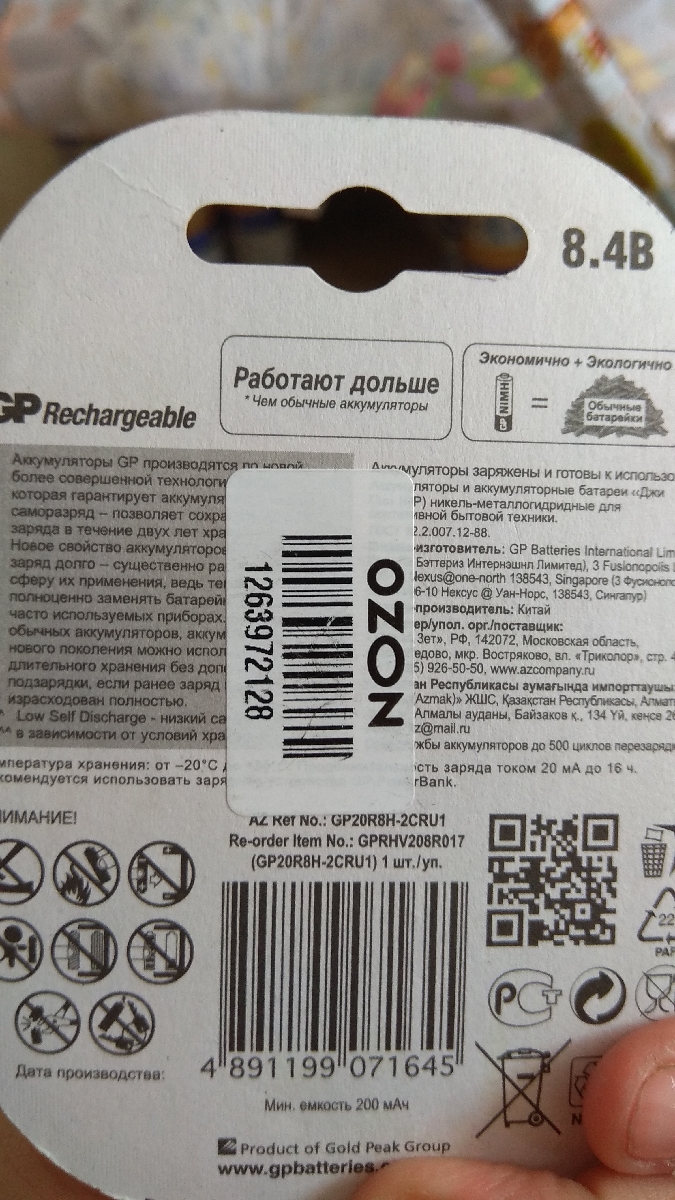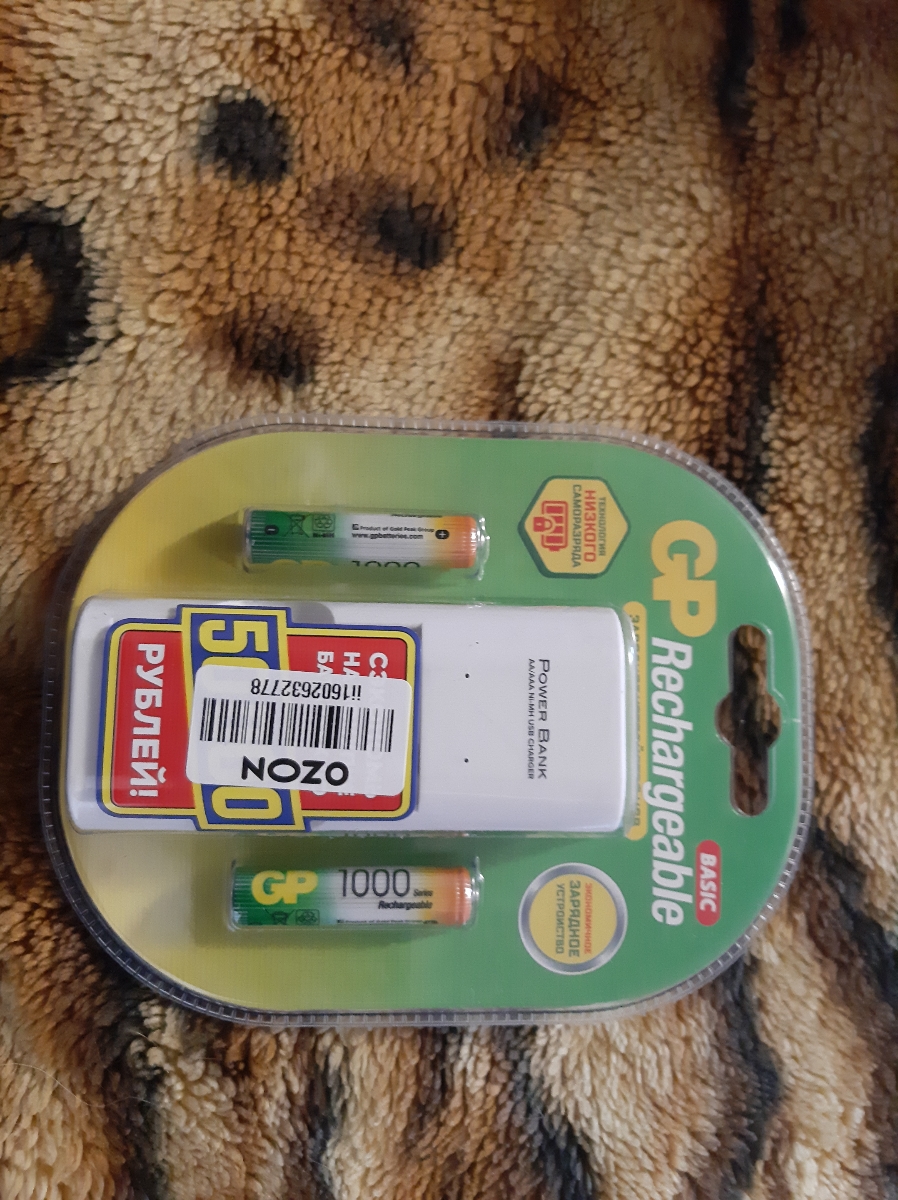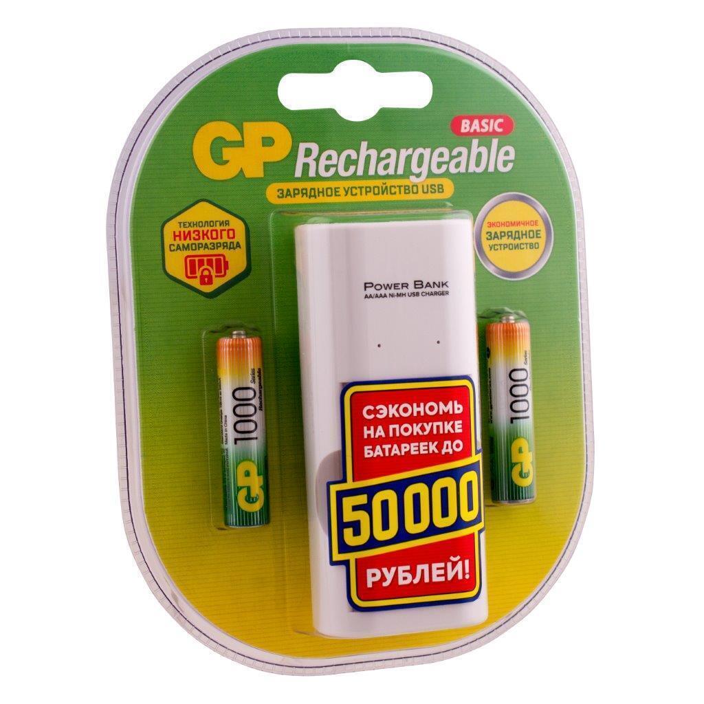 Аккумулятор Ni-Mh 650 мА·ч GP Rechargeable 650 Series AAA + Зарядное устройство PowerBank