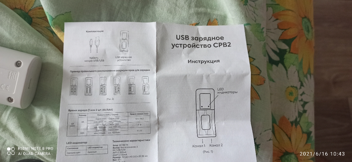 Зарядное устройство для аккумуляторов GP CPB2-2CR2