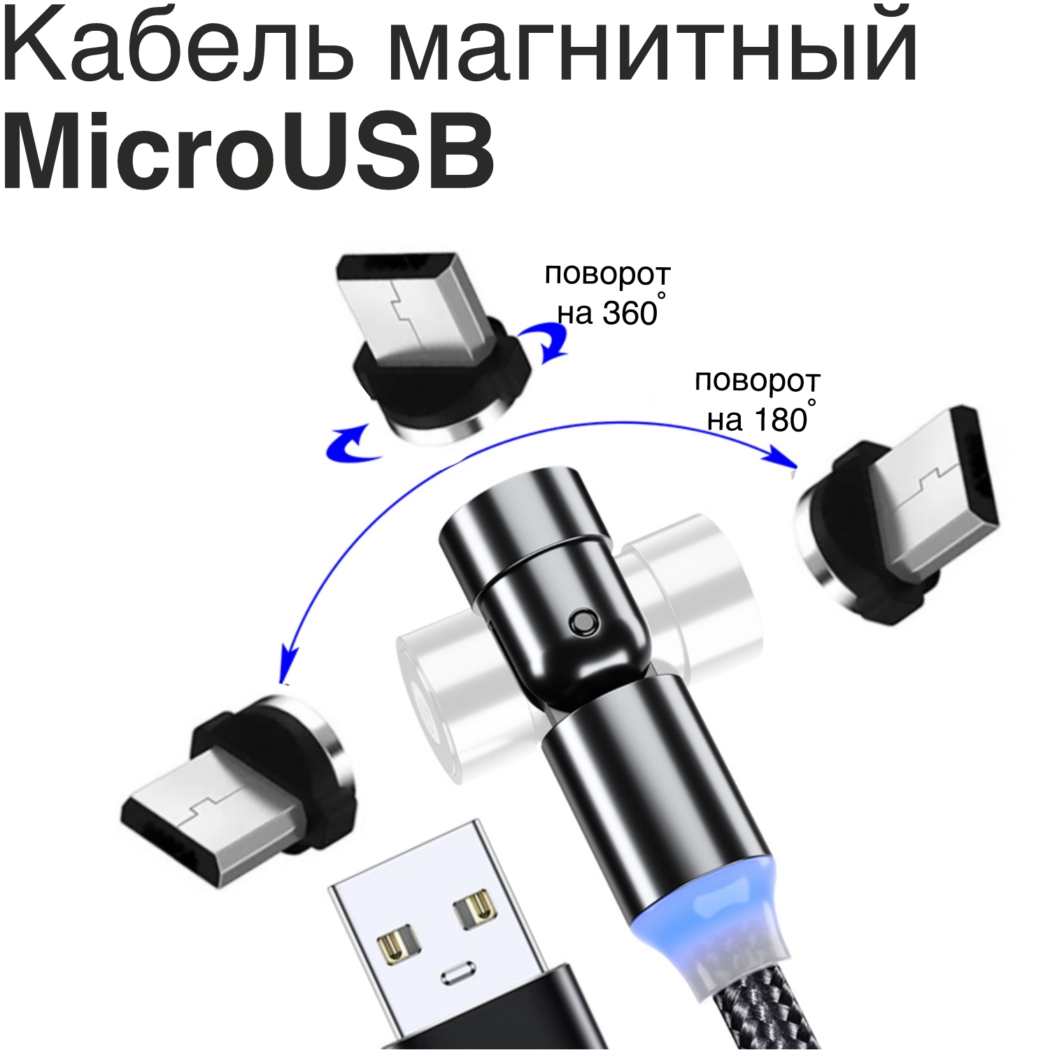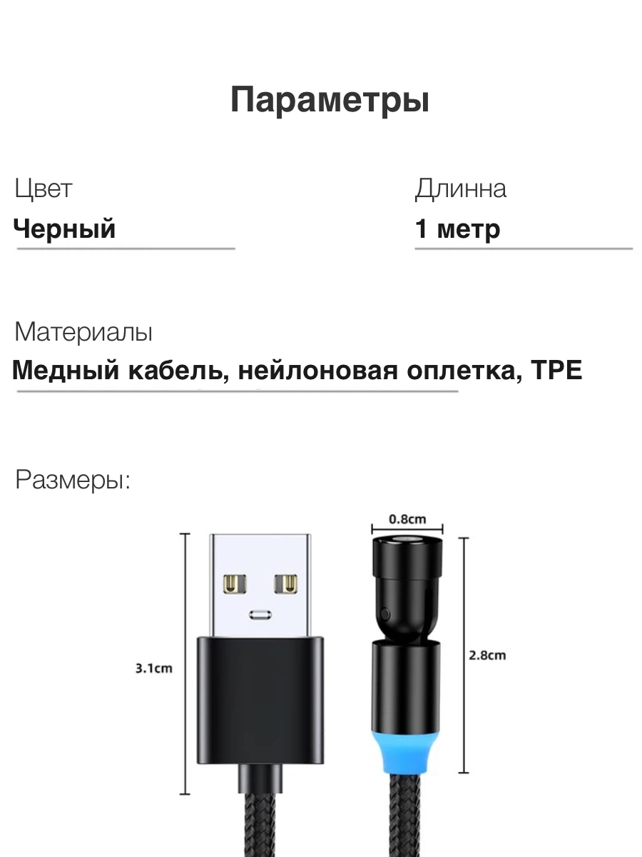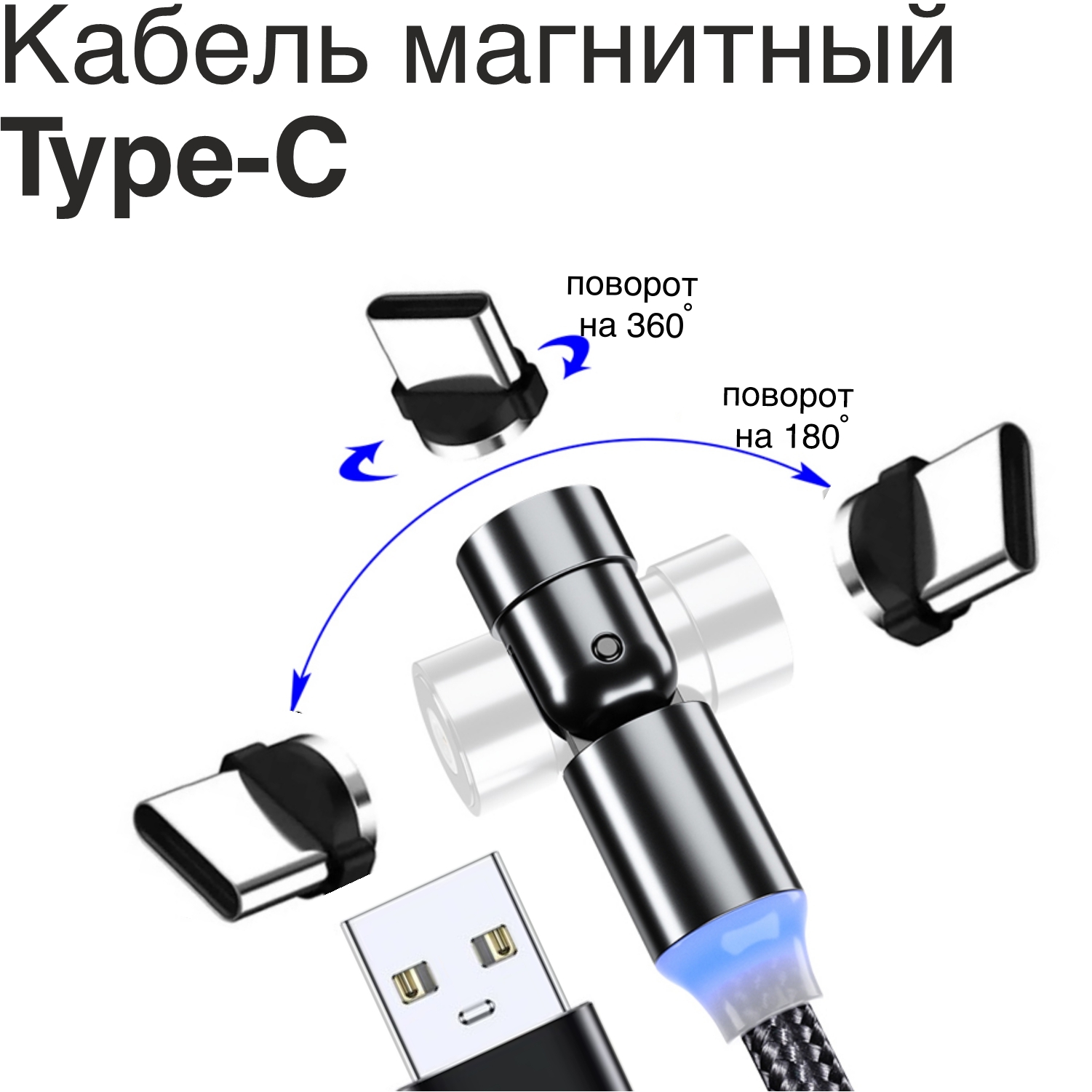 Зарядка для Android / GQbox / Магнитный кабель 360 градусов 1м. +3 разъема Type-C / ЧЕРНЫЙ
