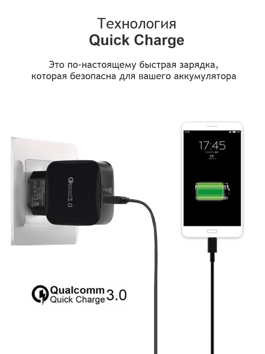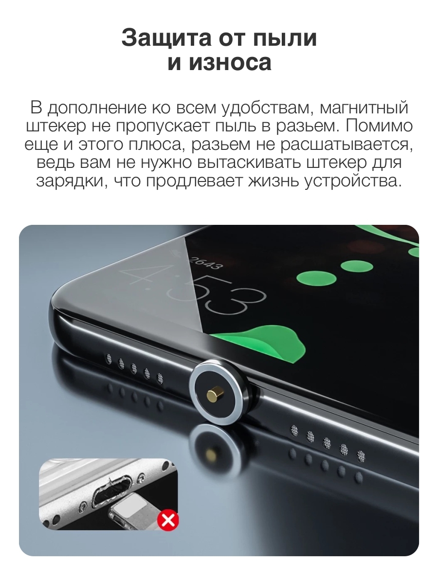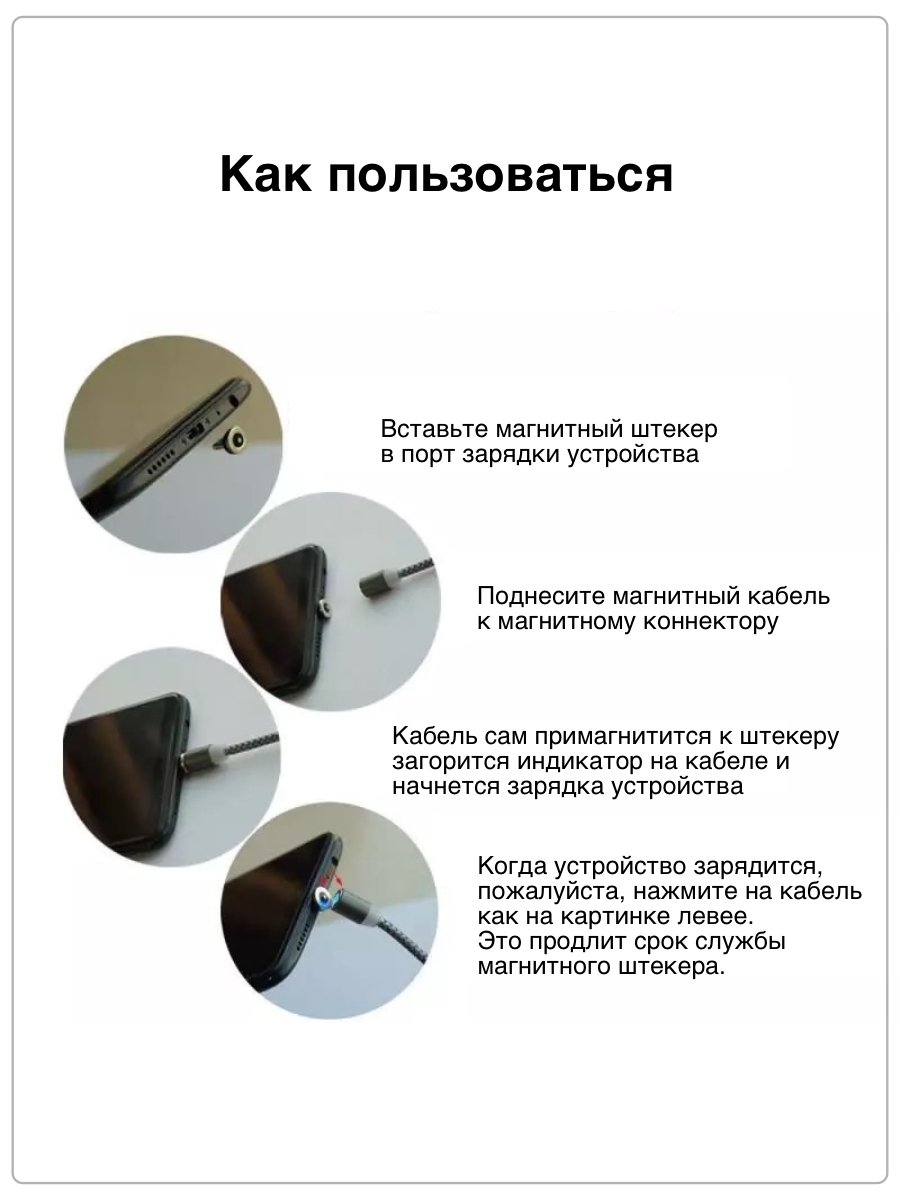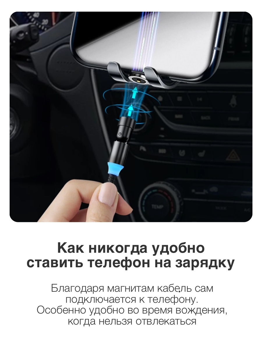 Зарядка для Android / GQbox / Магнитный кабель 360 градусов 1м. +3 разъема Type-C / ЧЕРНЫЙ