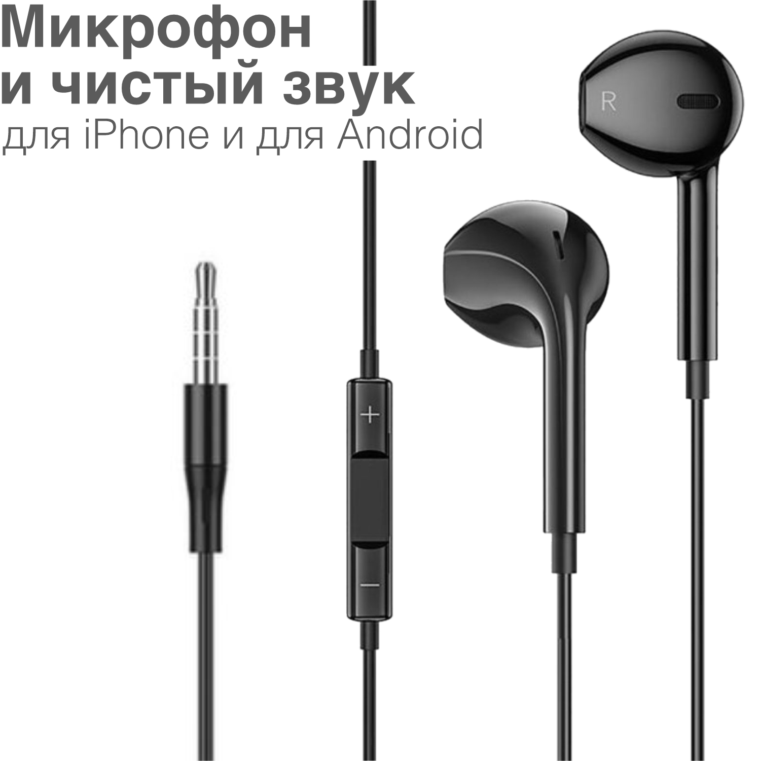 Наушники с Микрофоном / GQbox / Проводные Jack 3,5 / Гарнитура для Apple iPhone и Android / Для телефона / Черные