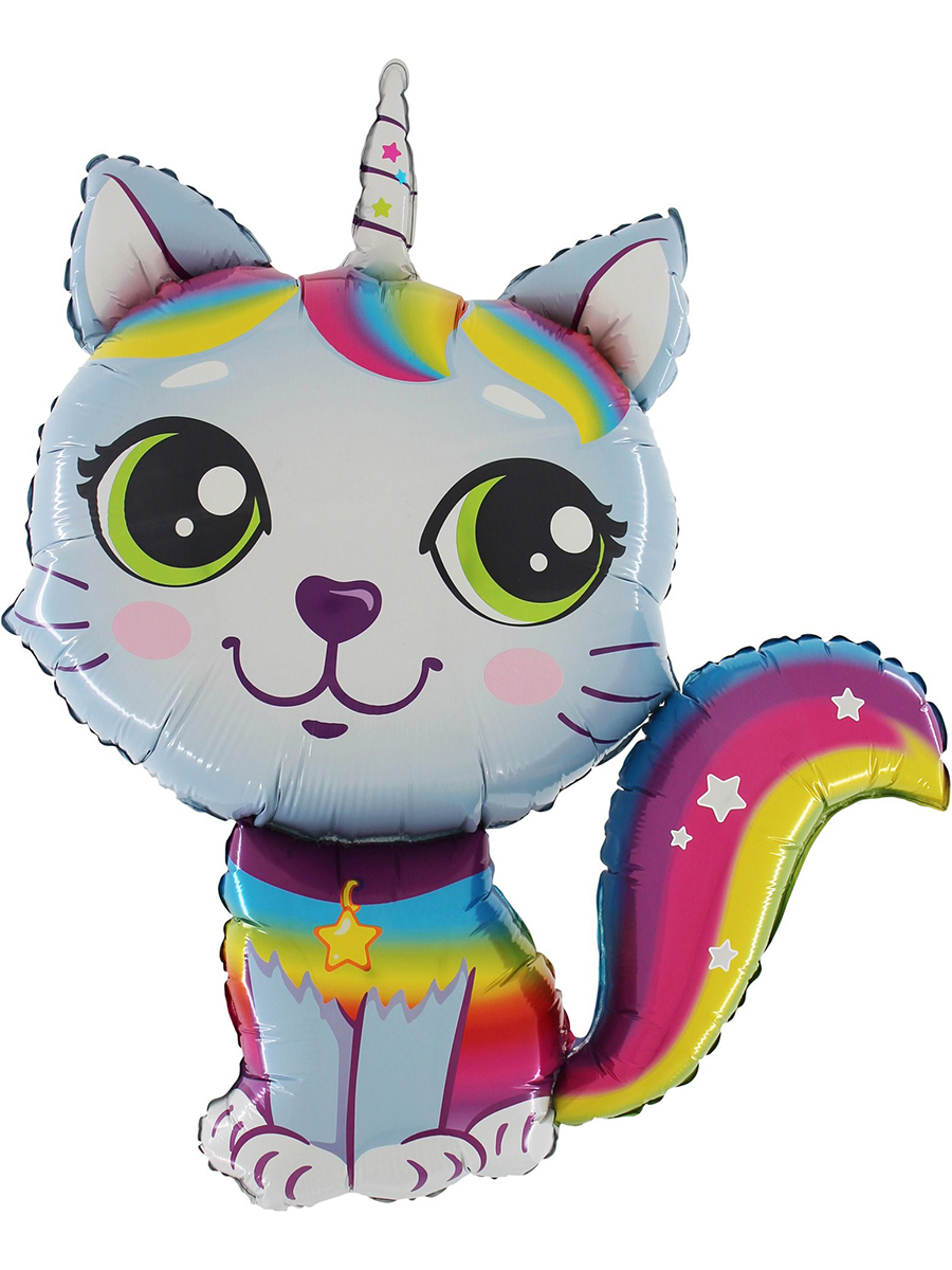 Воздушный шар фольгированный Grabo Кот-единорог, 97 см