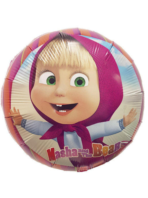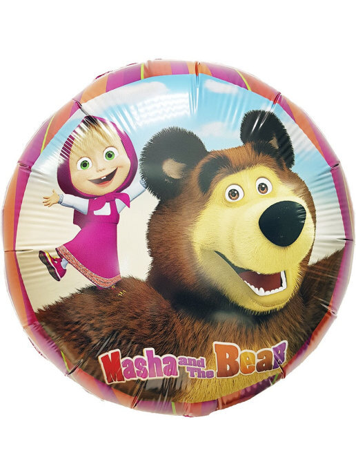 Воздушный шар фольгированный круг Grabo Маша и Медведь, розовый, 46 см