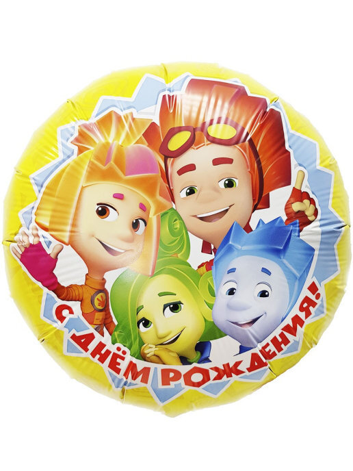 Воздушный шар фольгированный круг Grabo Фиксики С днем рождения, желтый, 46 см