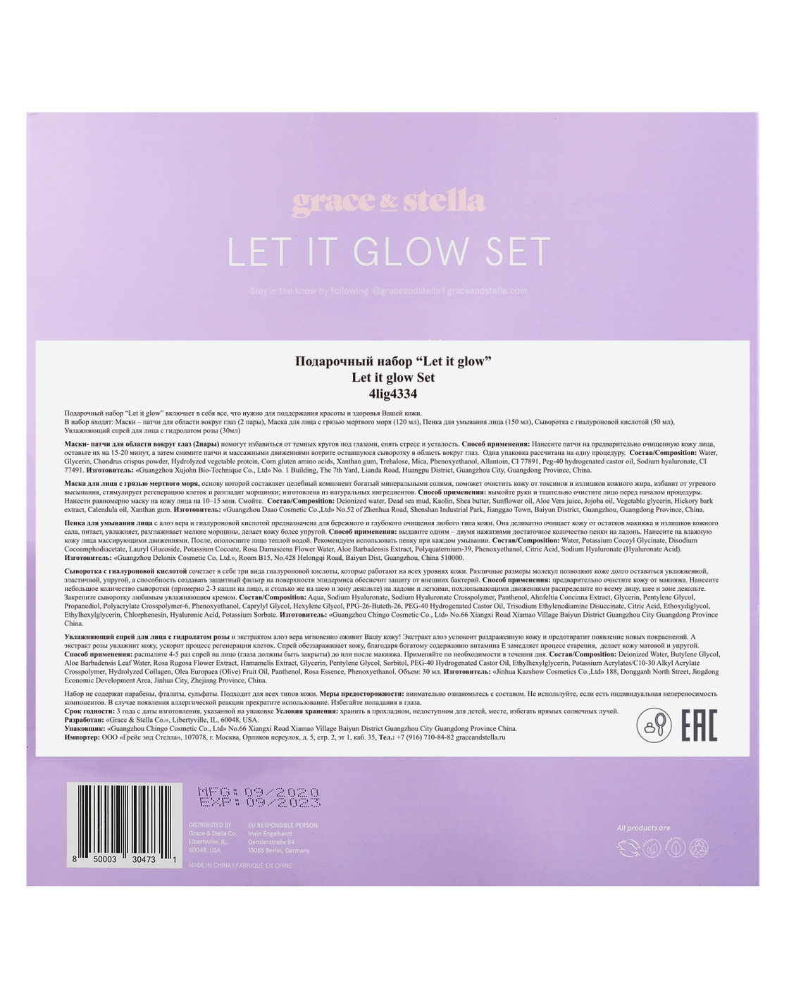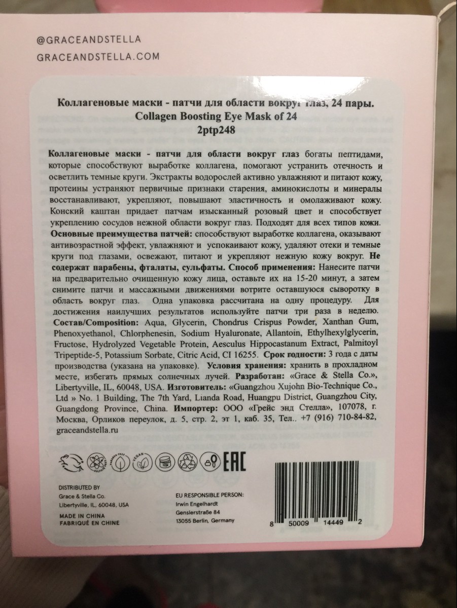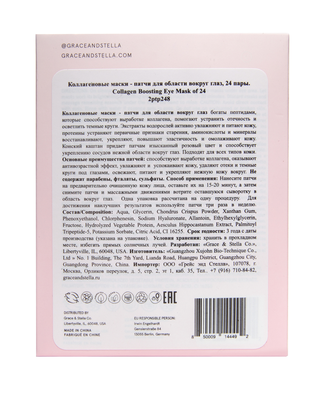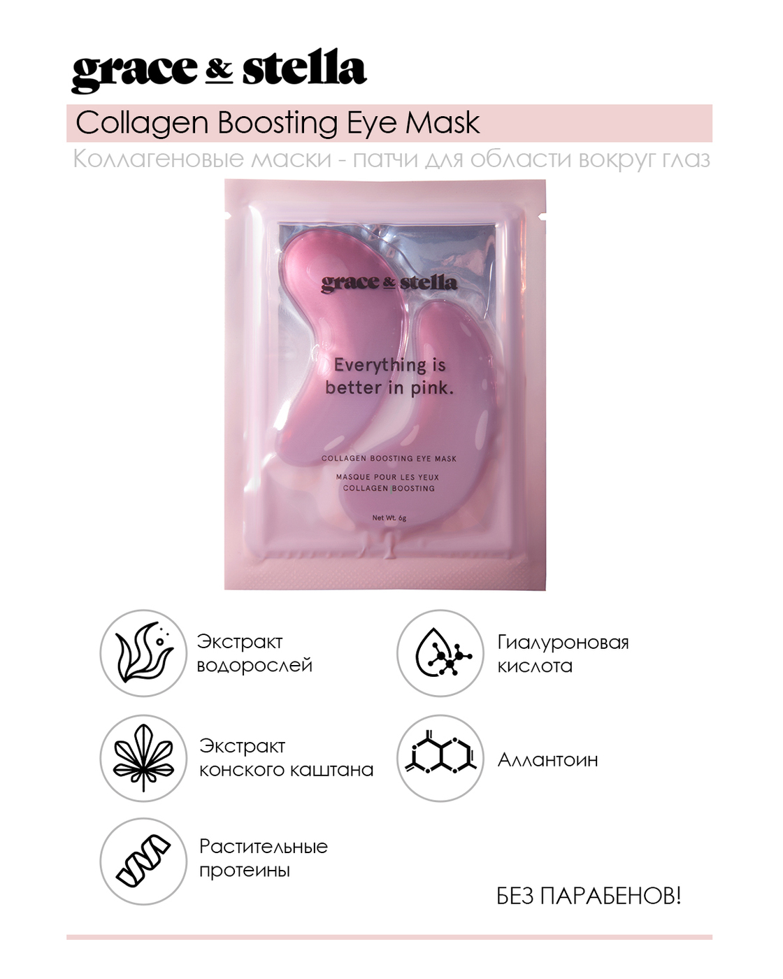 Grace and Stella Гидрогелевая маска для лица с коллагеном и золотом. Набор - 6шт