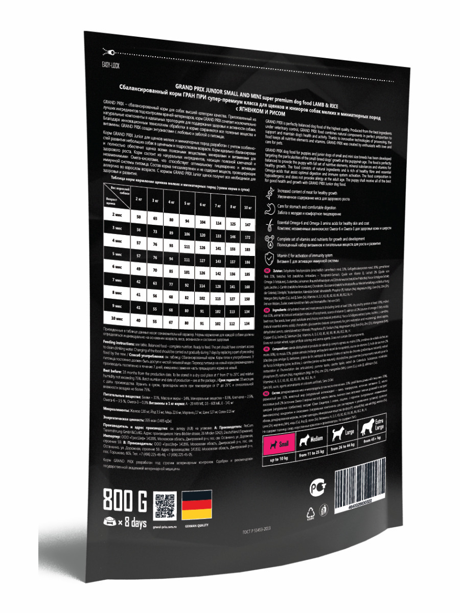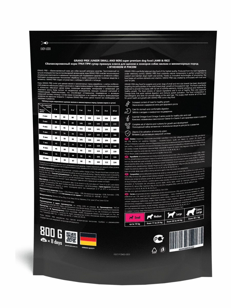 Сухой корм для щенков собак мелких и мини пород Grand Prix Small Junior гранпри, ягненок, 800 г.