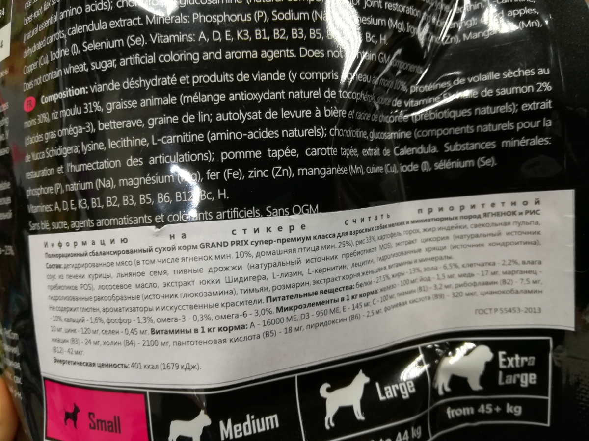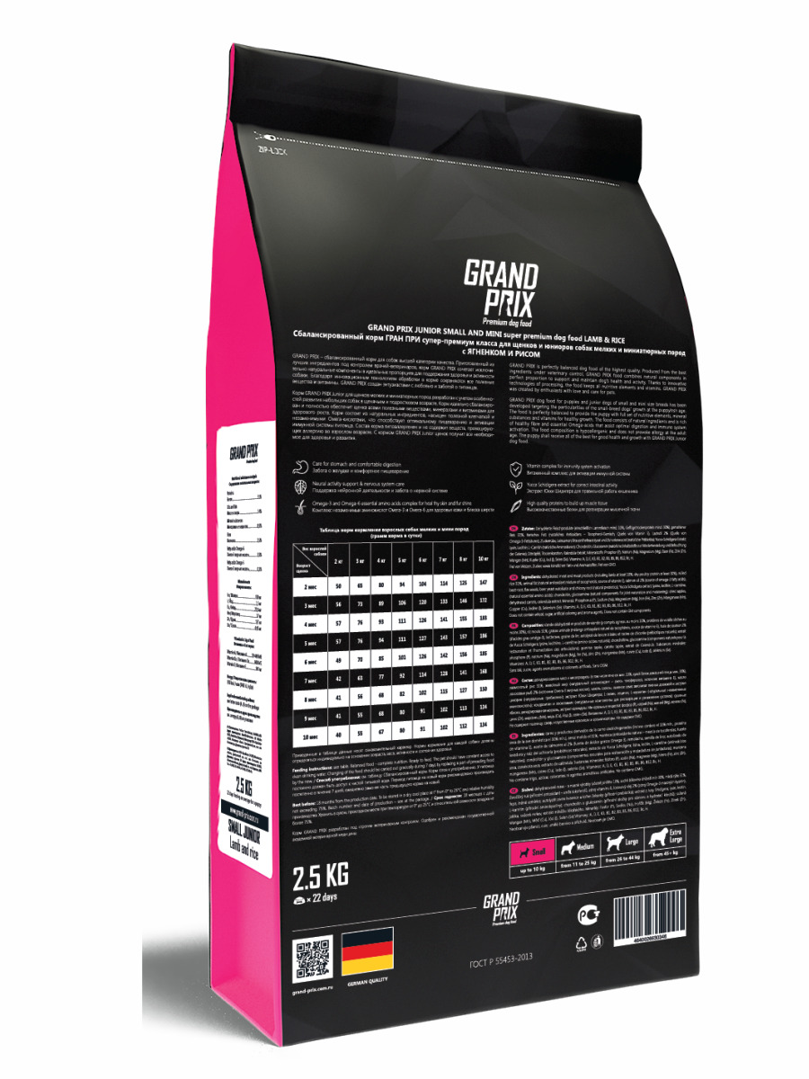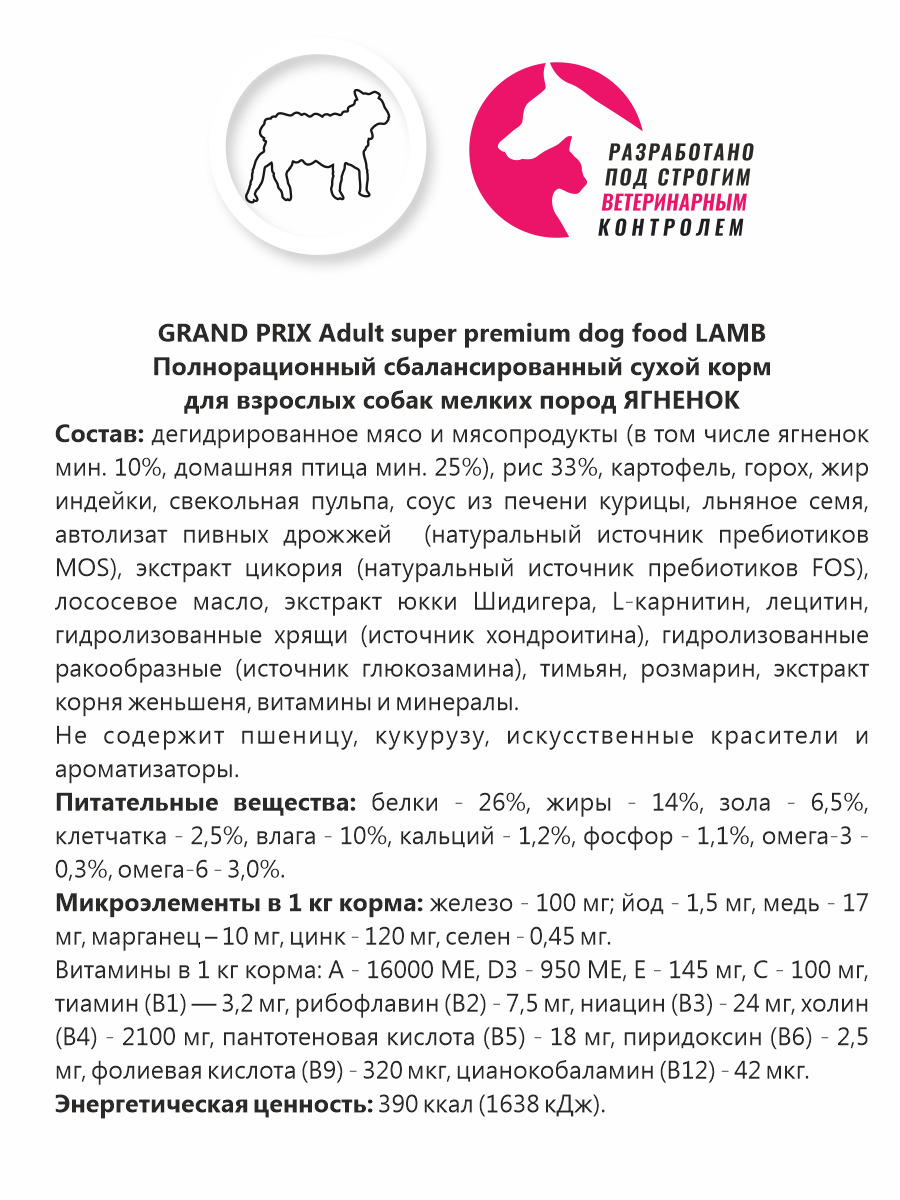 Корм сухой для щенков собак мелких пород Grand Prix Small Junior гранпри ягненок, 2,5 кг