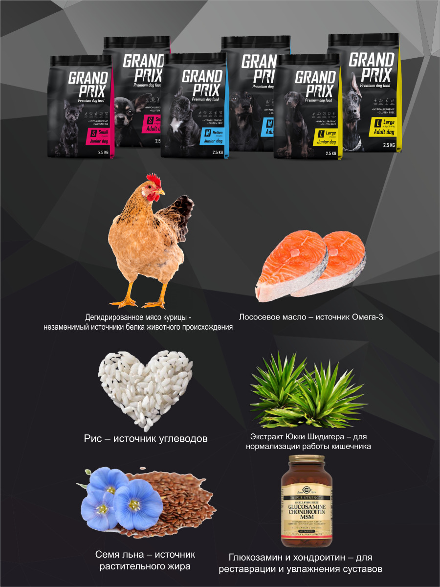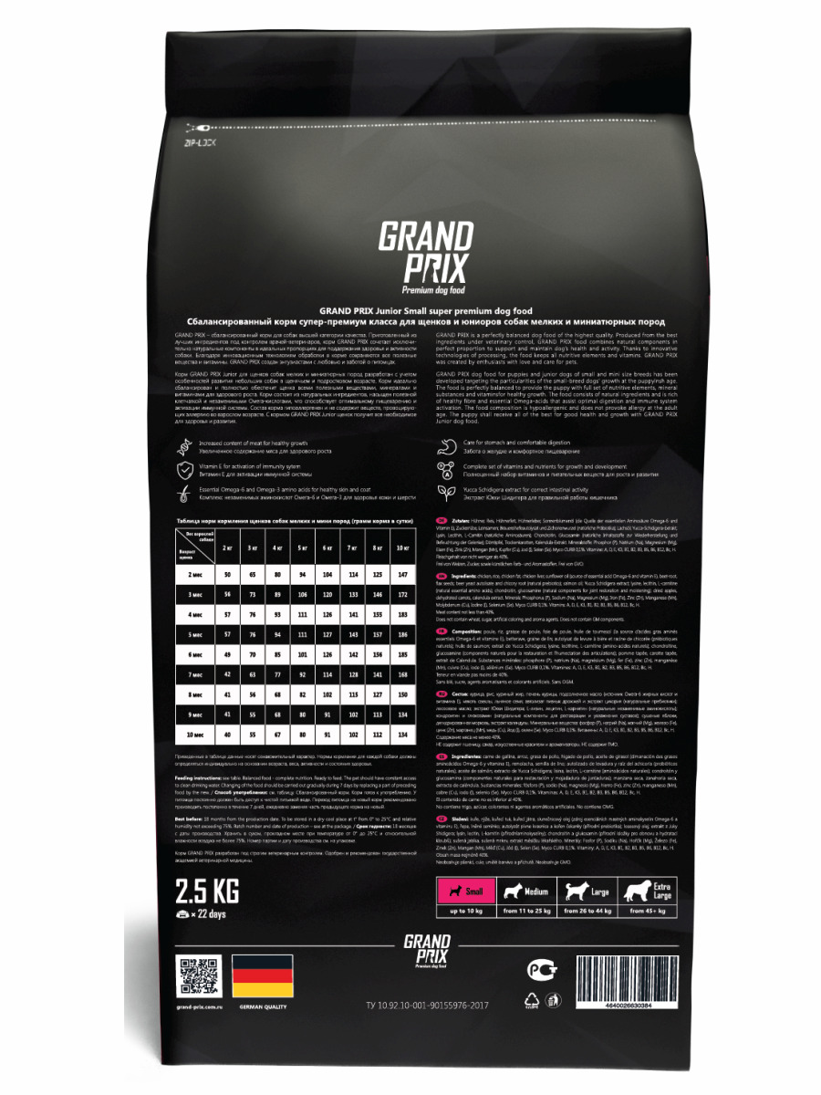 Сухой корм для щенков собак мелких пород GRAND PRIX Small Junior гранпри с курицей 2,5 кг