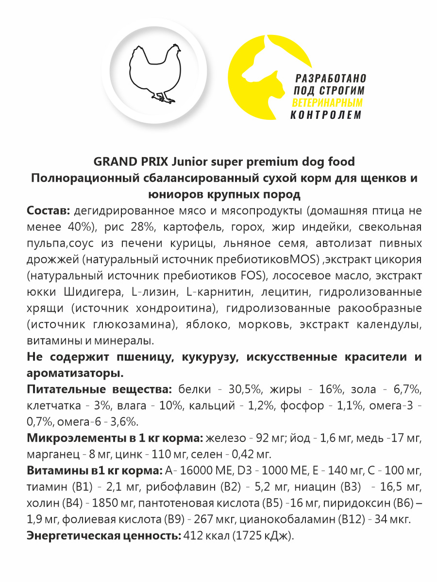 Корм для собак GRAND PRIX Medium Junior dog птица злаки
