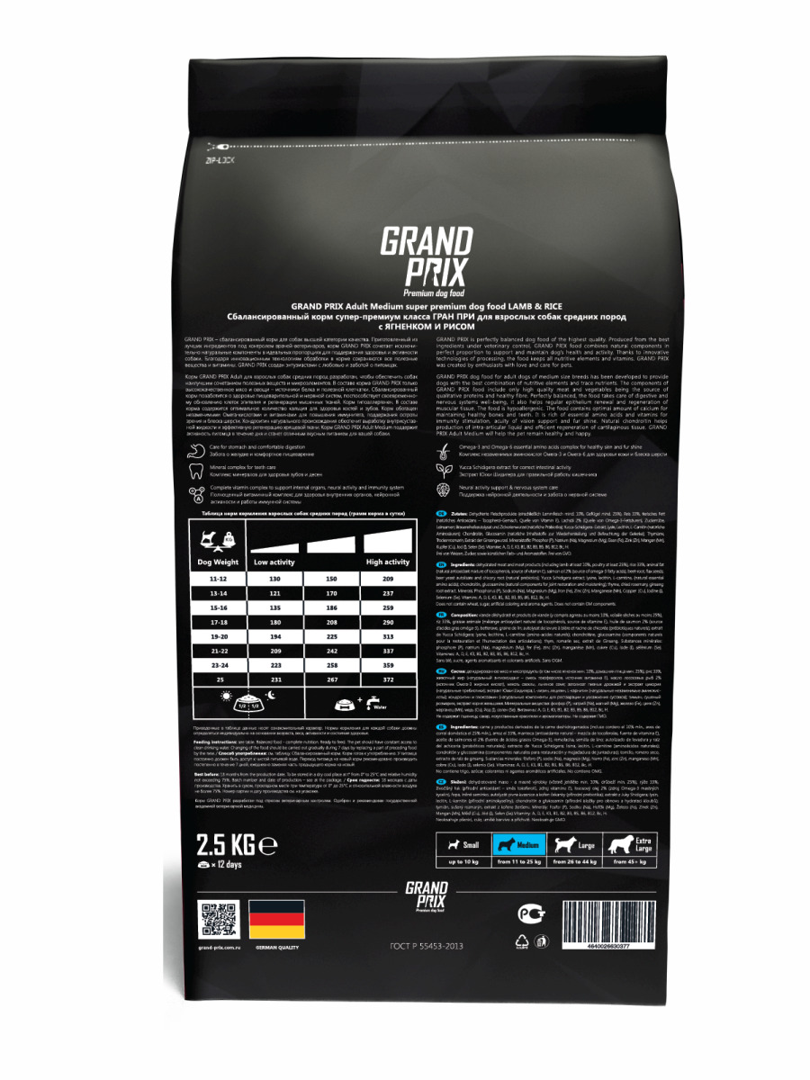 Корм сухой для взрослых собак средних пород Grand Prix Medium Adult гранпри ягненок, 12 кг