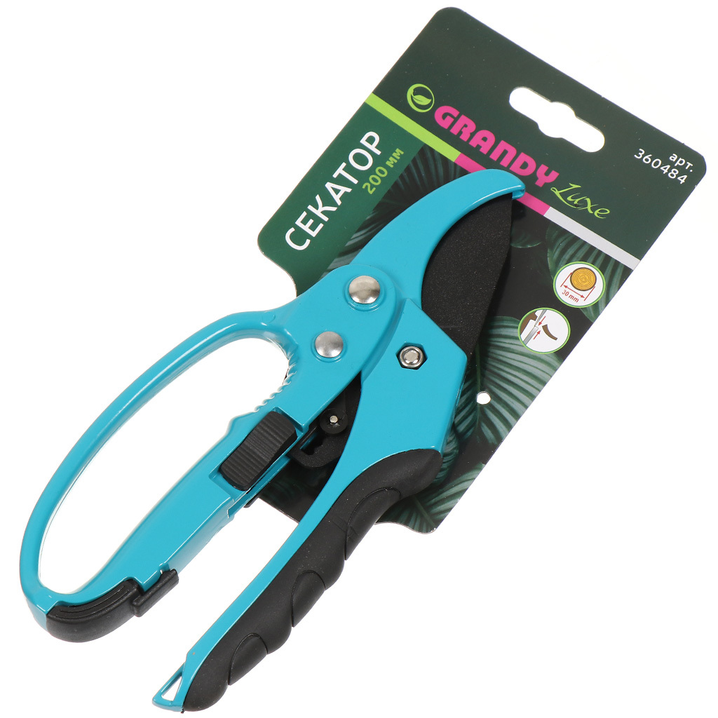 Секатор 200мм прямого реза храповой механизм, металлические обрезиненные рукоятки, LUXE GRANDY