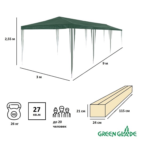 Тент садовый Green Glade 1063 3х9х2,55 м. без стенок, зеленый