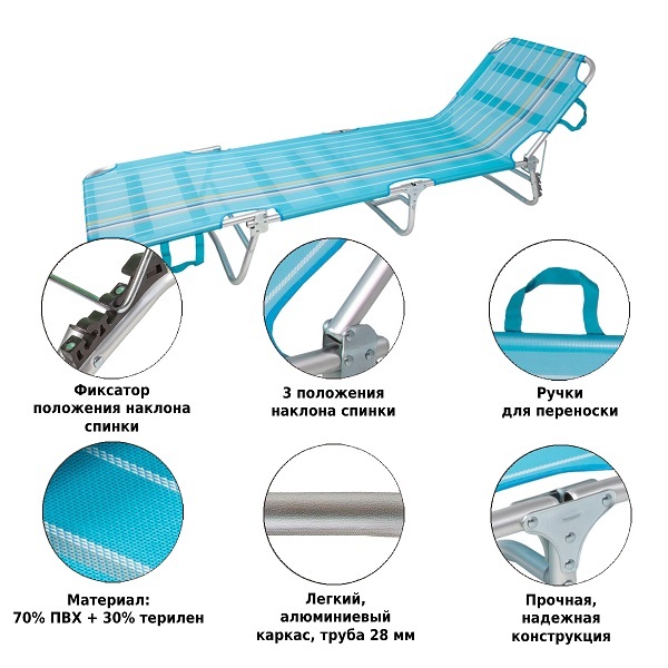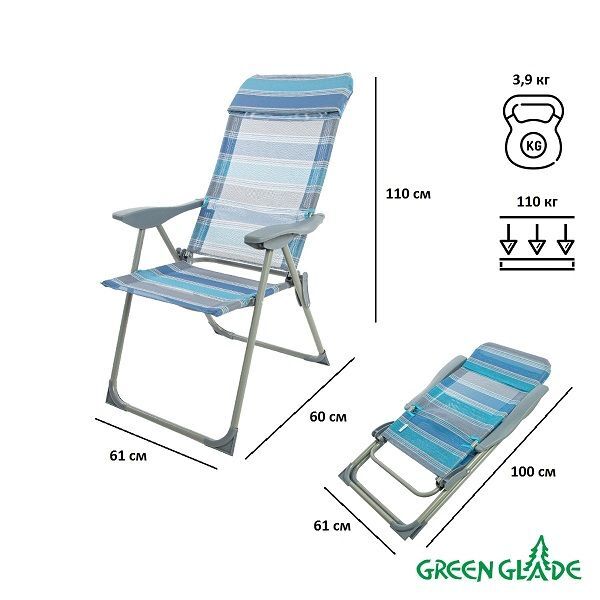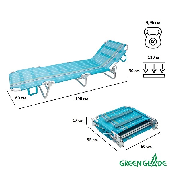 Шезлонг складной Green Glade М6187, устойчив к ультрафиолету, регулировка спинки, до 110 кг