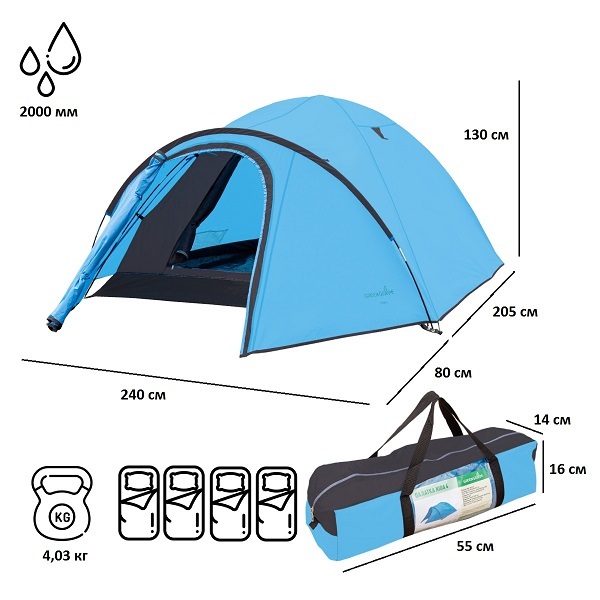 Палатка 4-местная Green Glade Nida 4, с москитной сеткой, тамбуром и вентиляцией