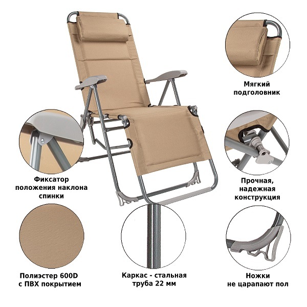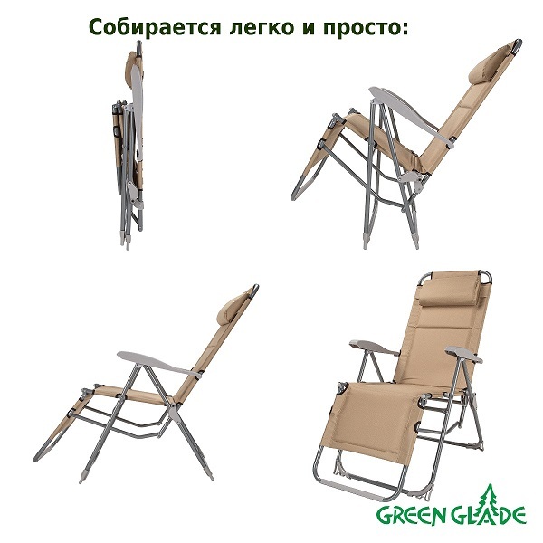 Кресло-шезлонг складное Green Glade 3219 бежевое, до 110 кг, водостойкое