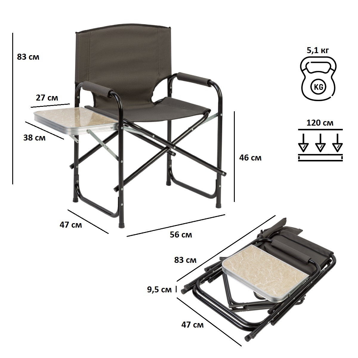 Кресло складное со столиком Green Glade РС521
