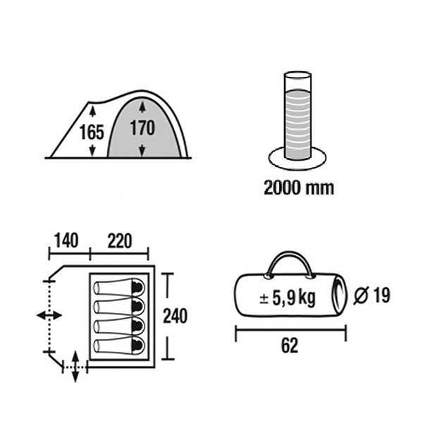 Палатка 4-местная Green Glade Tarzan 4 с тамбуром, москитной сеткой и вентиляцией