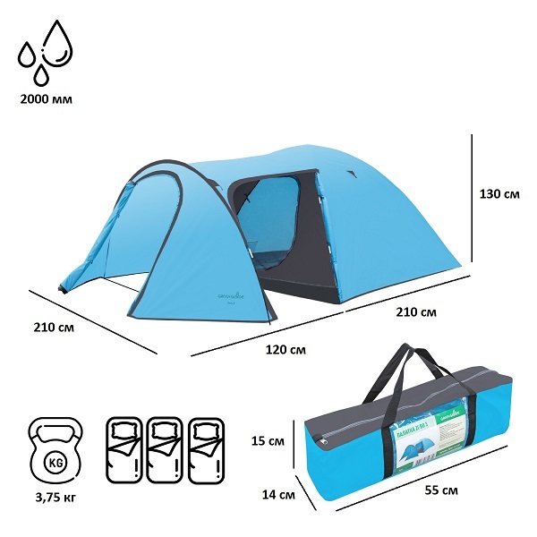 Палатка 3-местная Green Glade Zoro 3 с тамбуром и вентиляцией