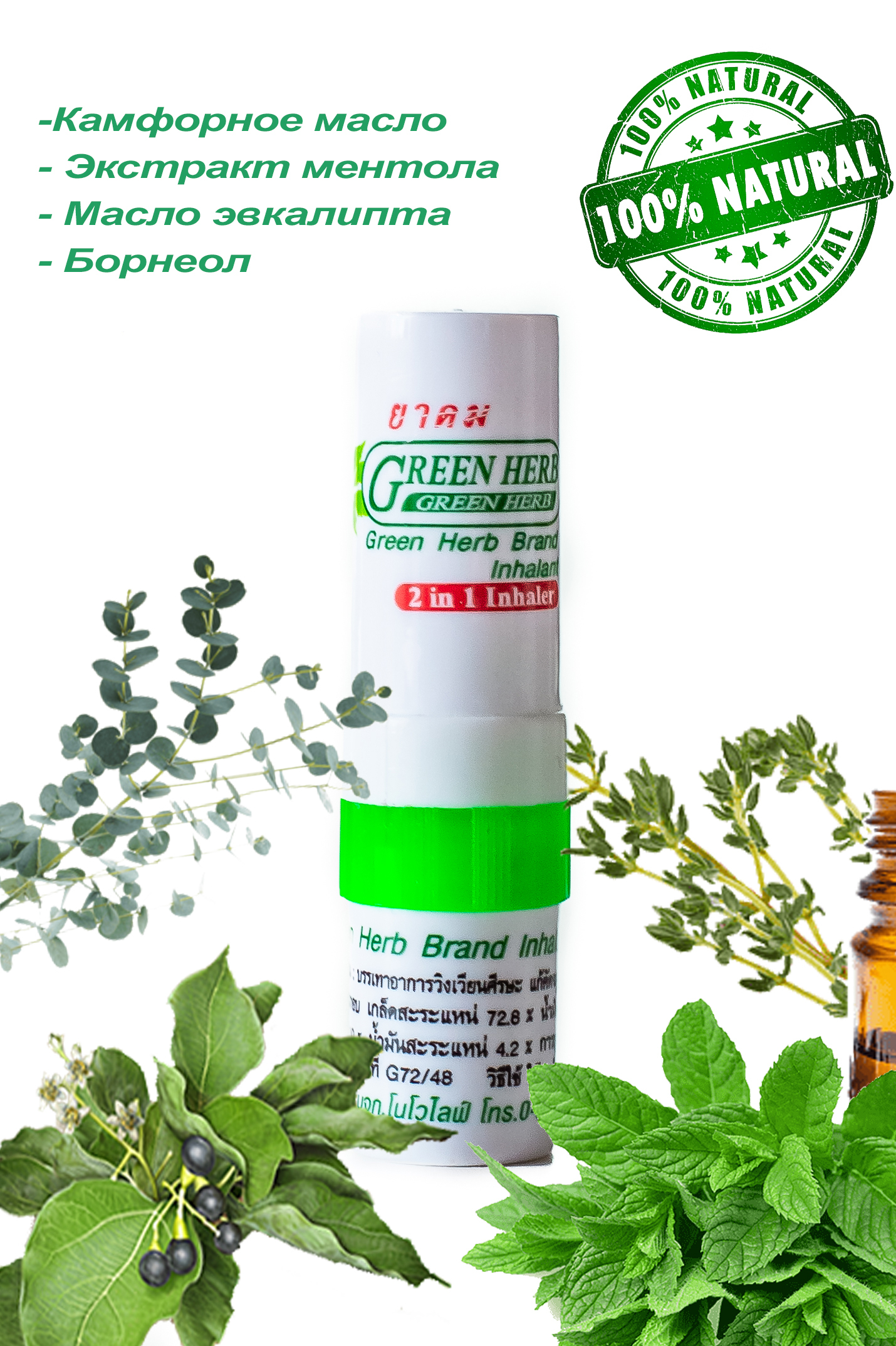 Green Herb Ингалятор-бальзам Эфирное масло 2 мл