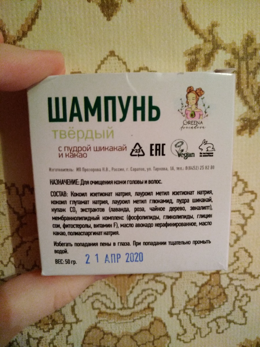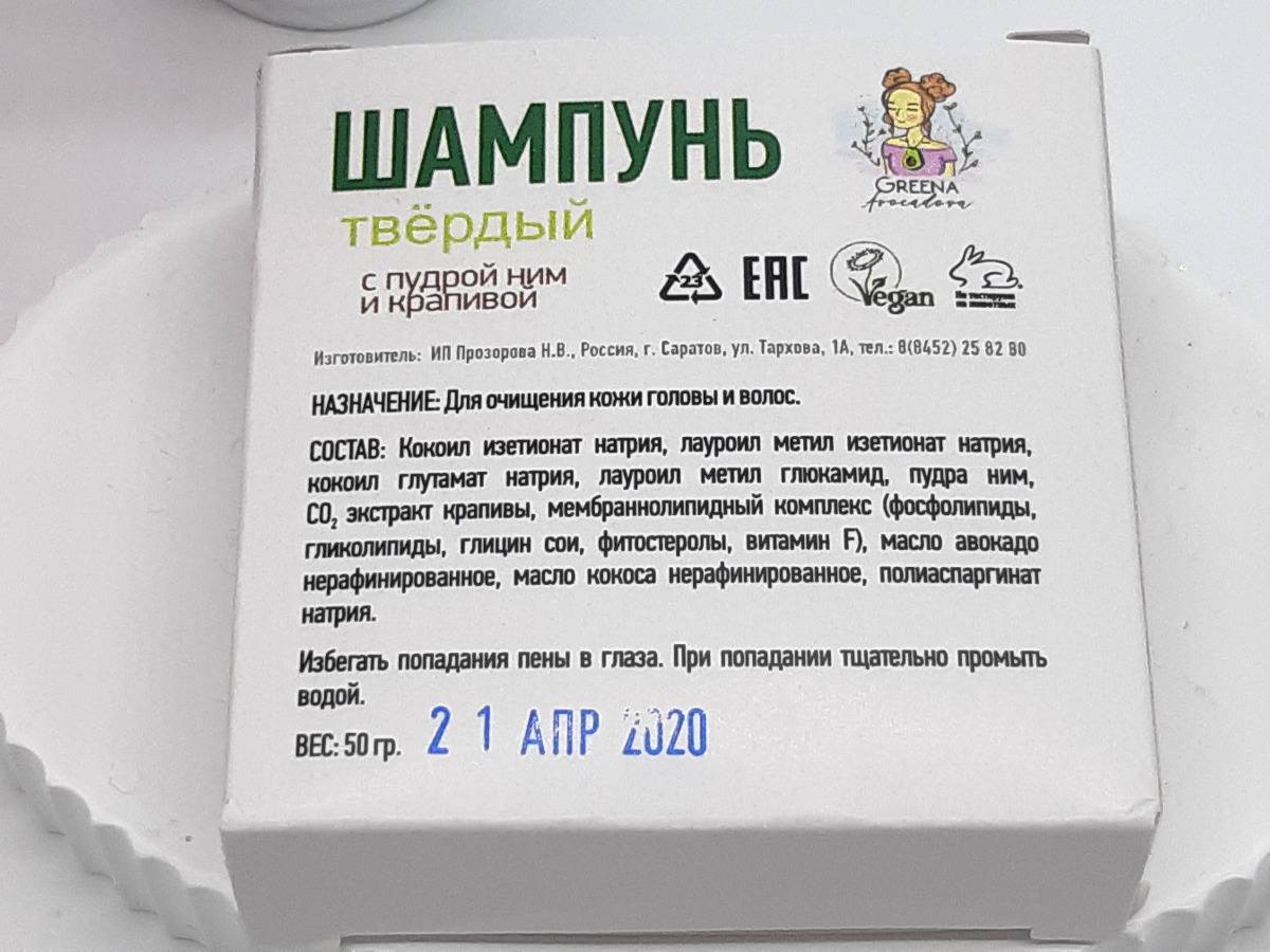 Greena Avocadova Твердая плитка для умывания для сухой кожи