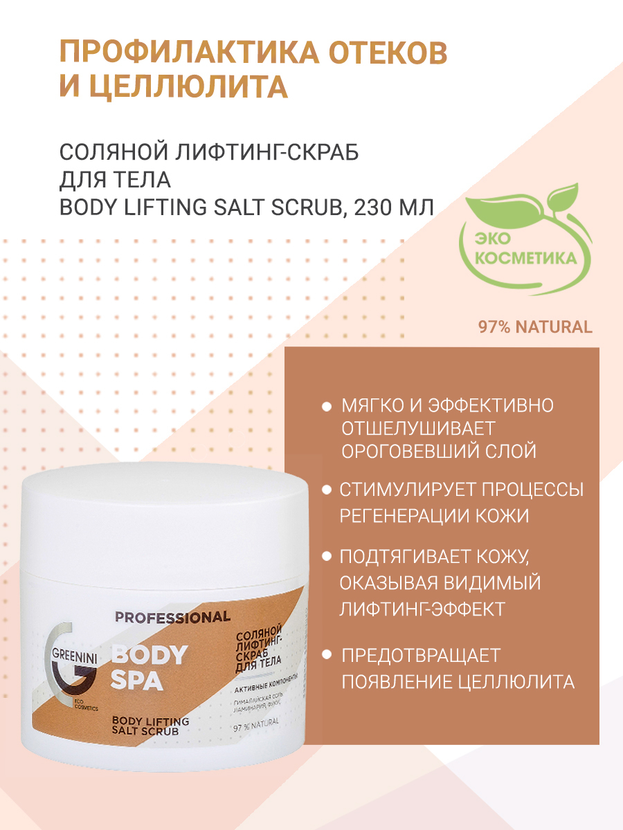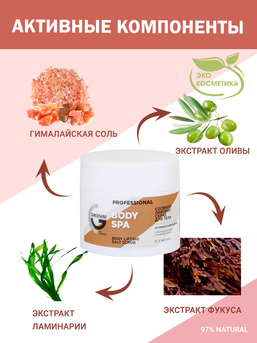 Greenini Professional Соляной лифтинг-скраб для тела Body SPA 300 г