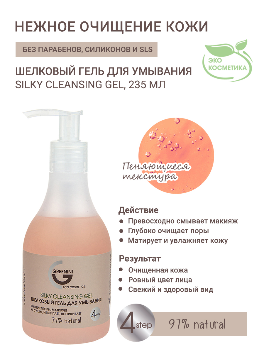 Greenini Шелковый гель для умывания 235мл