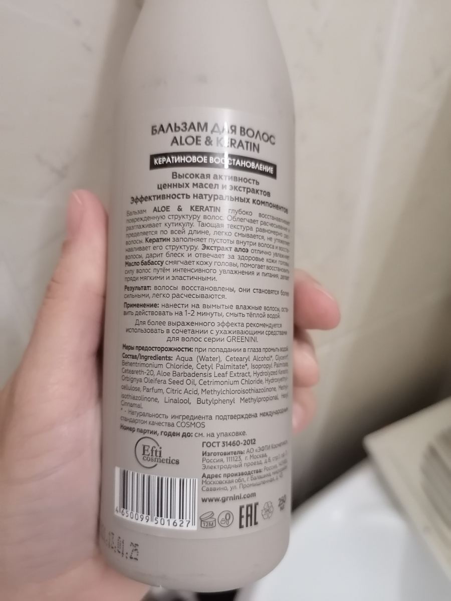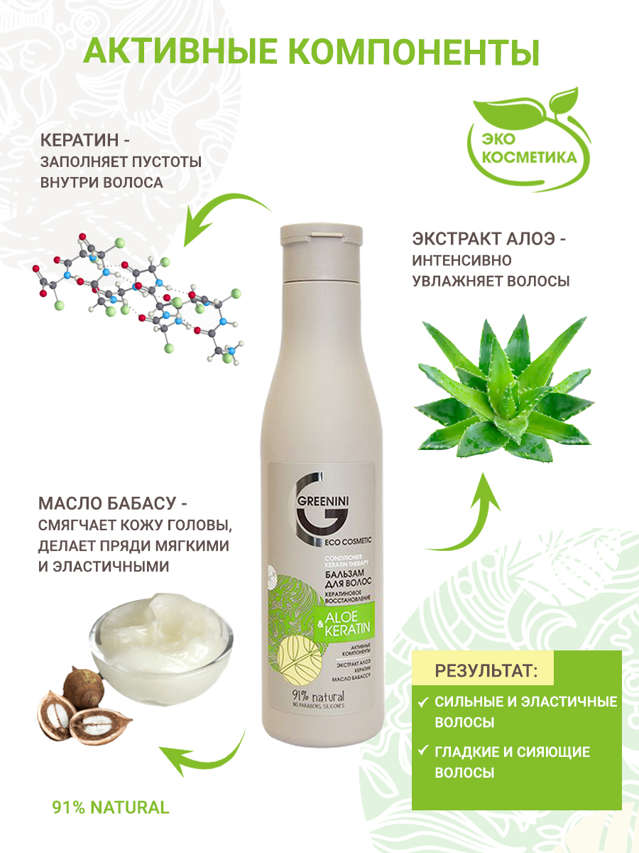 Greenini Бальзам для волос Кератиновое восстановление Aloe & Keratin 250 мл