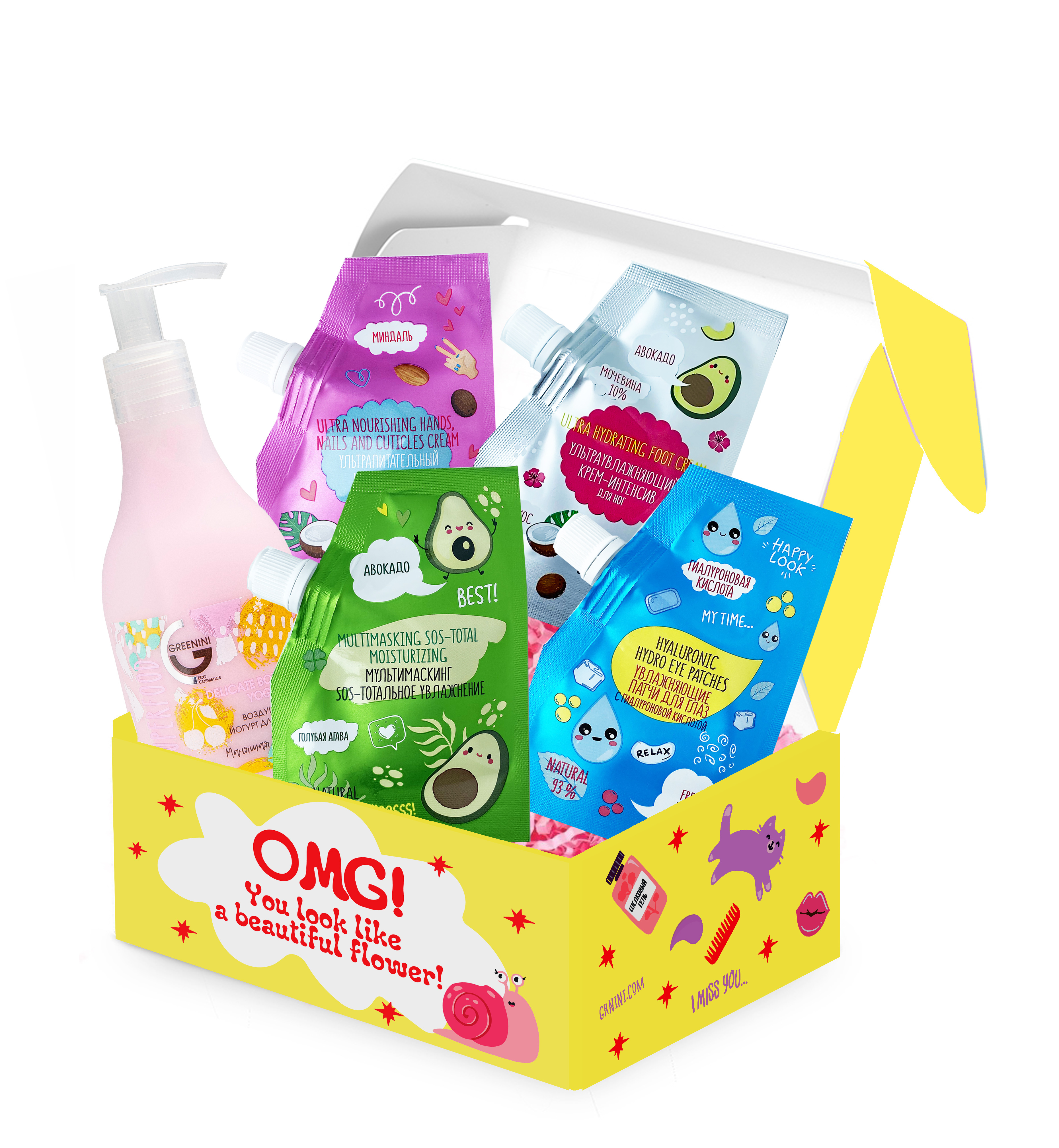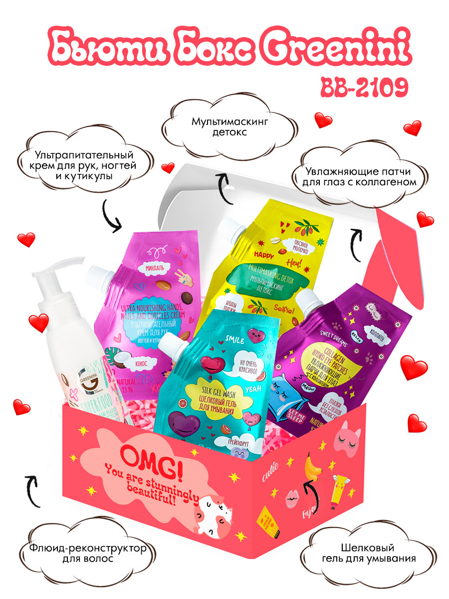 Greenini Подарочный набор Beauty Box Пилинг скатка 25 мл, Патчи для глаз 25 мл, Мультимаскинг 25 мл