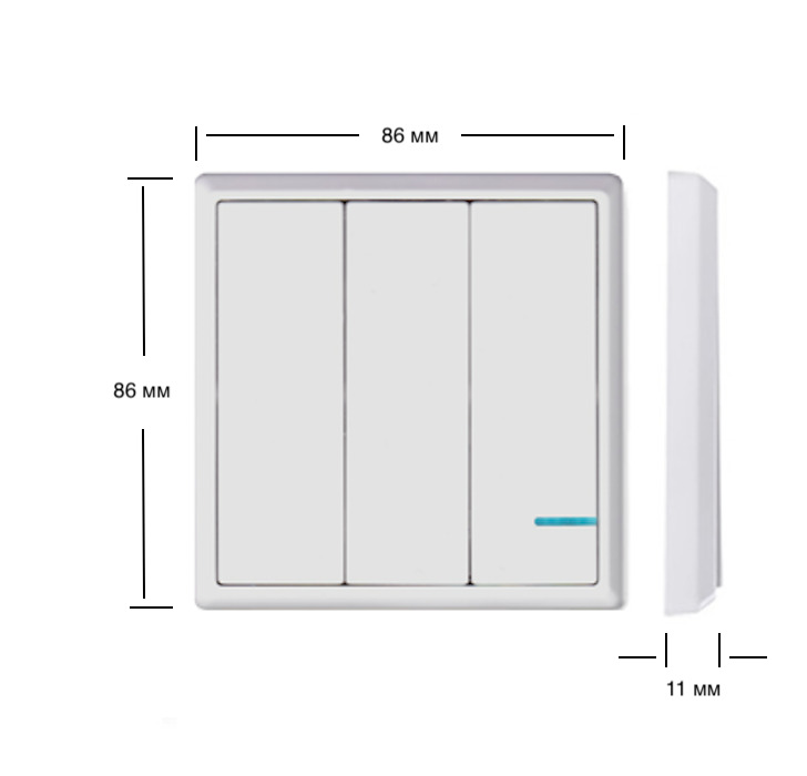 Умный выключатель GRITT Practic 3кл. белый комплект: 1 выключатель, 3 реле 1000Вт 433 + WiFi
